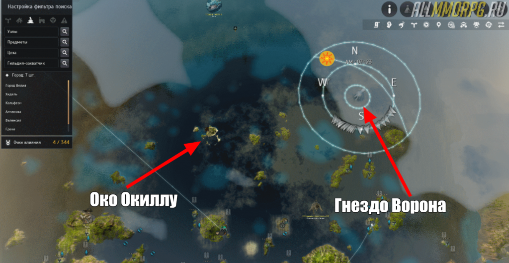 Остров Гнездо Ворона располагается к северо-востоку от Ока Окиллу, в море Росс, поэтому его не видно на карте. Чтобы найти его, воспользуйтесь Компасом исследователя. Если у вас нет компаса, плывите на север от острова Веры.