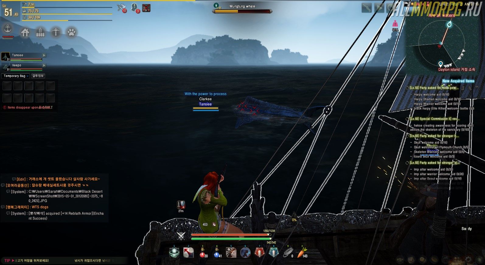 Для убийства кита требуется несколько групп охотников. Добыча достается пяти группам с наибольшим уроном. Кит постоянно двигается, и для охоты на него требуется быстрая лодка. Один член группы должен управлять лодкой, а все остальные - наносить урон монстру. Рулевой получит добычу, даже если он не нанесет монстру ни одного удара. Мы рекомендуем вам пользоваться обычной рыбацкой лодкой, так как ею легче рулить. Вы сможете оставаться за спиной у кита, и вам будет легче целиться.