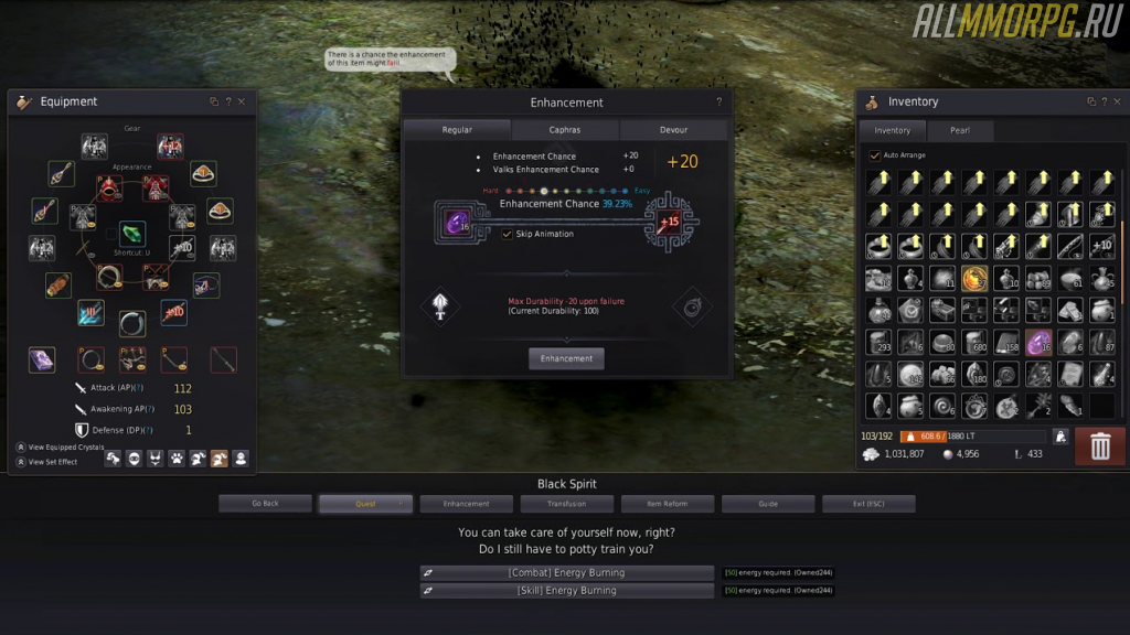 Выполните задания по цепочке до "[Доспехи Черной звезды] На алтарь Мертвого бога". Для этого задания вам потребуется Концентрированная энергия призванного монстра х3. Чтобы получить энергию, откройте окно обработки (L) и нагрейте заранее добытые предметы экипировки с боссов. Перед этим обязательно убедитесь, что у вас есть нужное задание. Далее зайдите в раздел "Создание оружия" и объедините три единицы Концентрированной энергии призванного монстра с Красным оком, полученным в одном из предыдущих заданий. Результатом станет Око тьмы,
