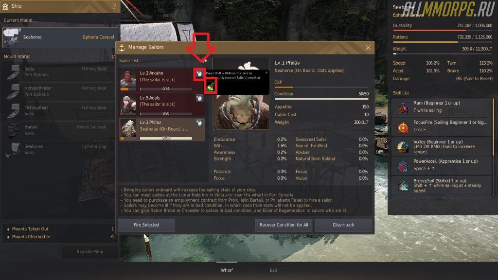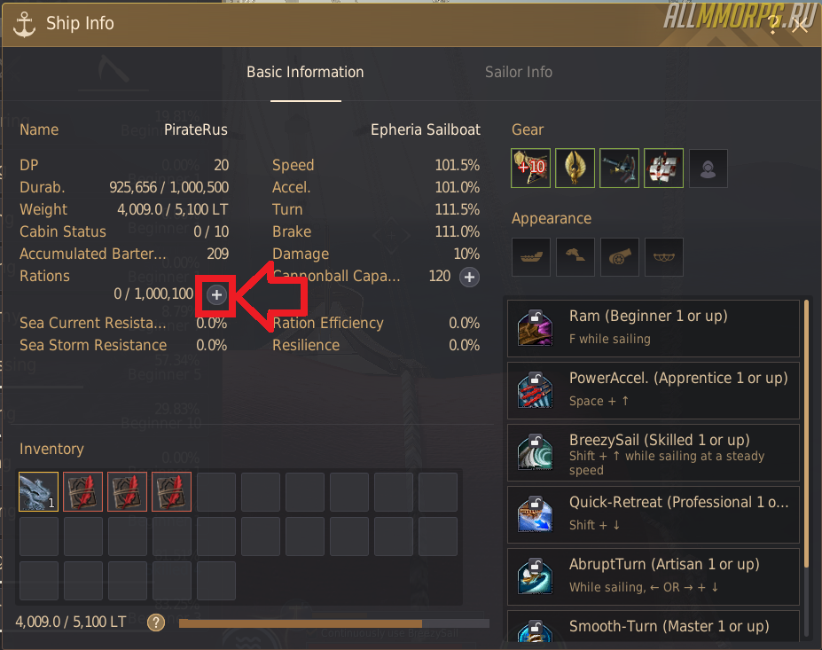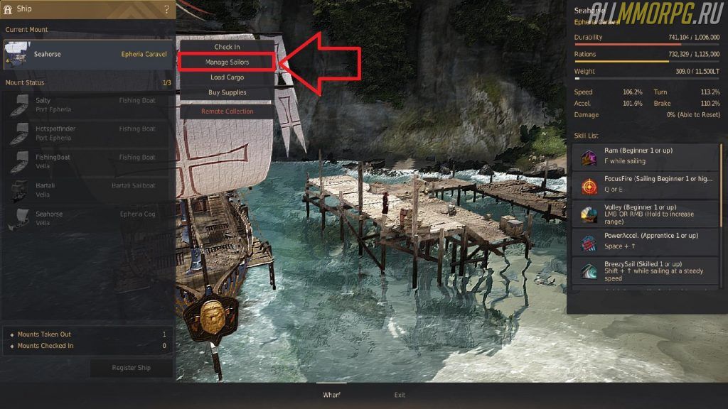 Уровень навыка судоходства | Название навыка корабля | Механика | Как пользоваться |