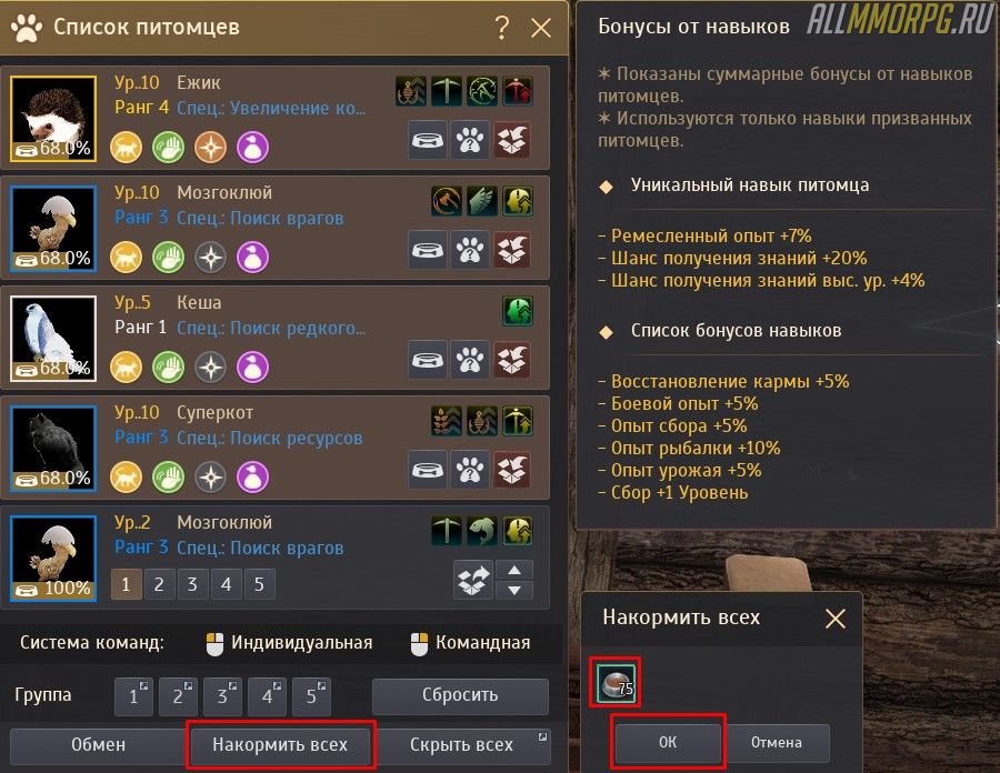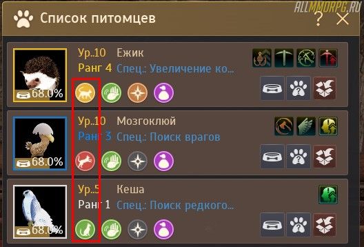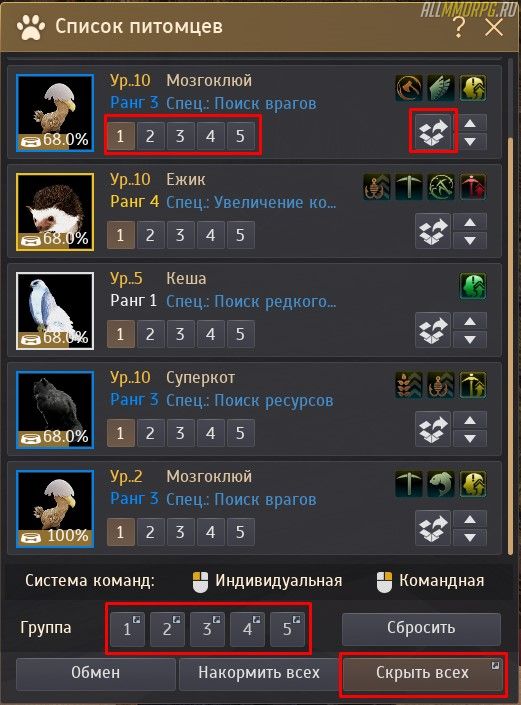 Особые умения можно включать и выключать в любой момент (ПКМ по иконке с питомцами, ЛКМ по нужному питомцу, ЛКМ по нужной команде).