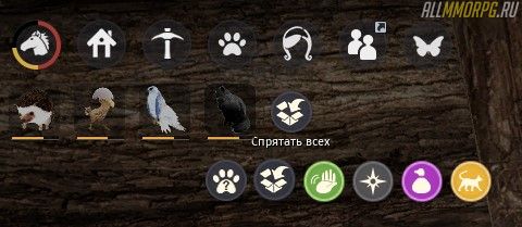 Призванные питомцы автоматически следуют за хозяином и подбирают за него добычу. Чтобы отдать питомцу индивидуальную команду, щелкните по иконке с меню, а потом по строке с нужным питомцем. Здесь можно включить и выключить автоматическое следование и автоматический сбор добычи.