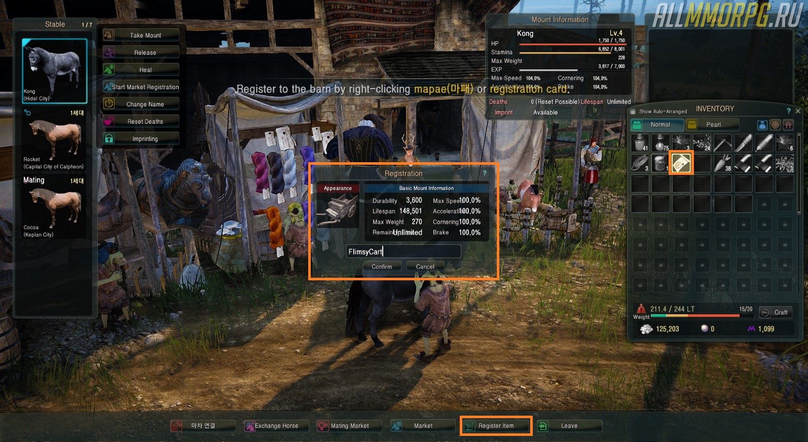 Купив сертификат, зарегистрируйте повозку у конюха, подобно любому другому транспорту. Нажмите R, чтобы поговорить с конюхом, а потом выберите пункты "Стойло" и "Зарегистрировать". Щелкните по предмету из инвентаря и введите название повозки.