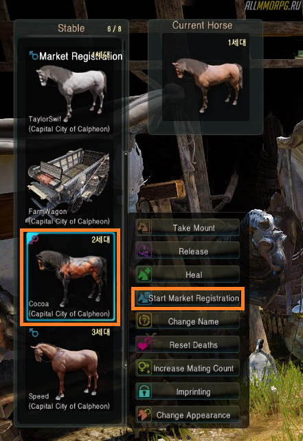 Чтобы получить доступ к ярмарке, поговорите с конюхом и выберите соответствующий пункт диалога. На ярмарке выставлены лошади, которых продают другие игроки.