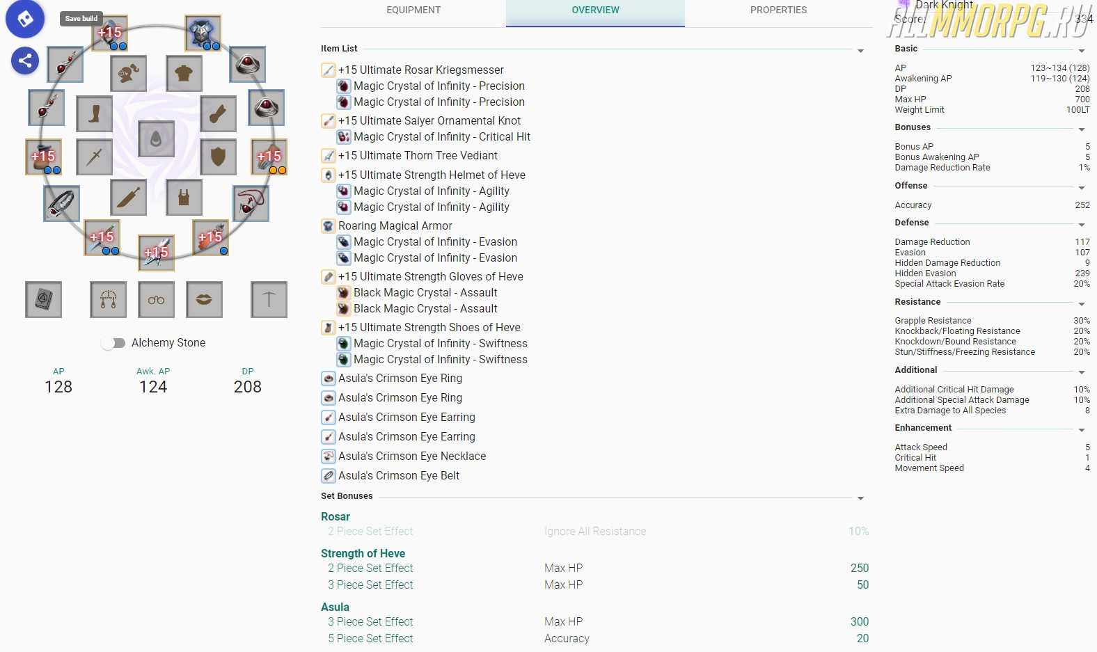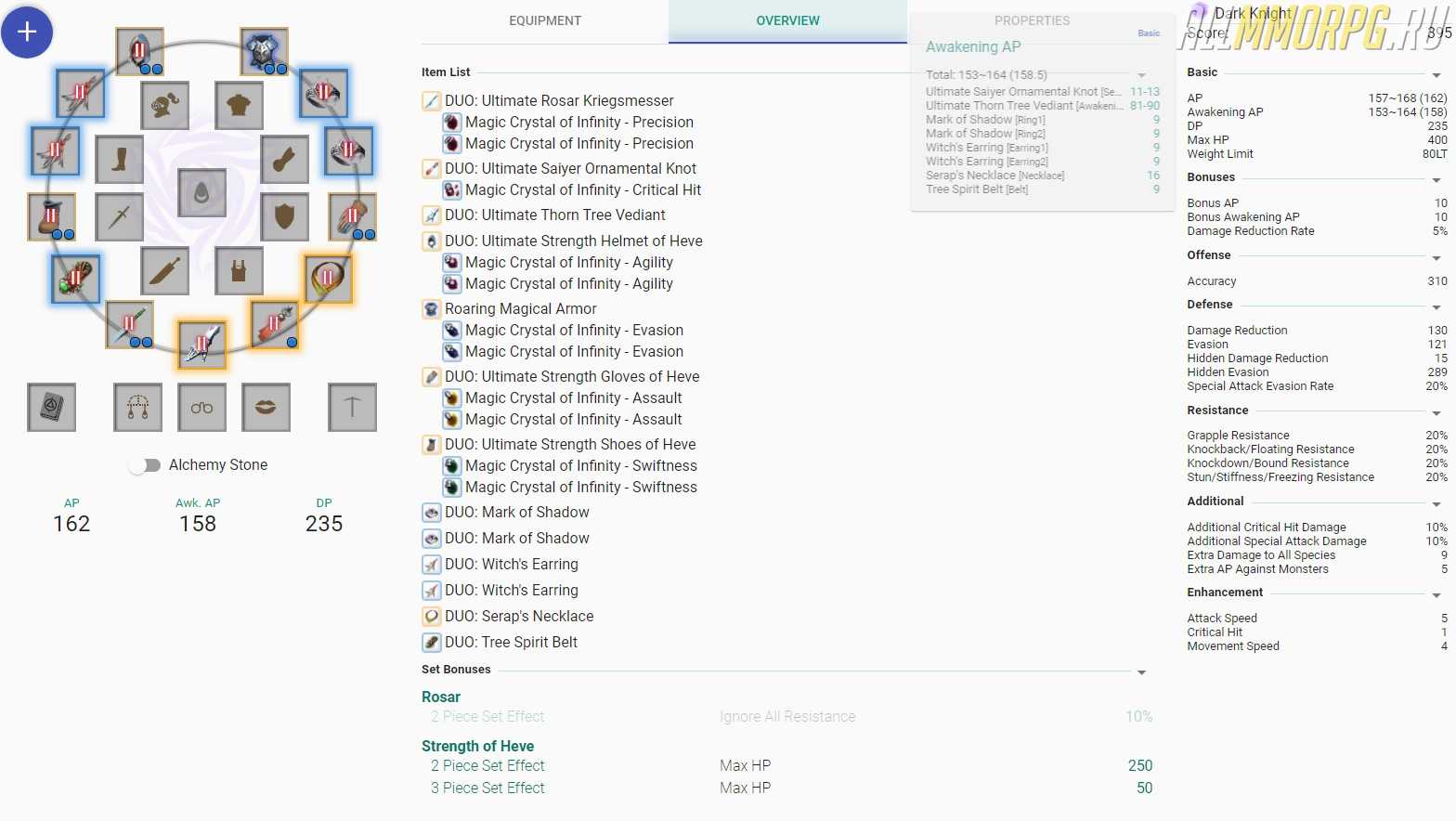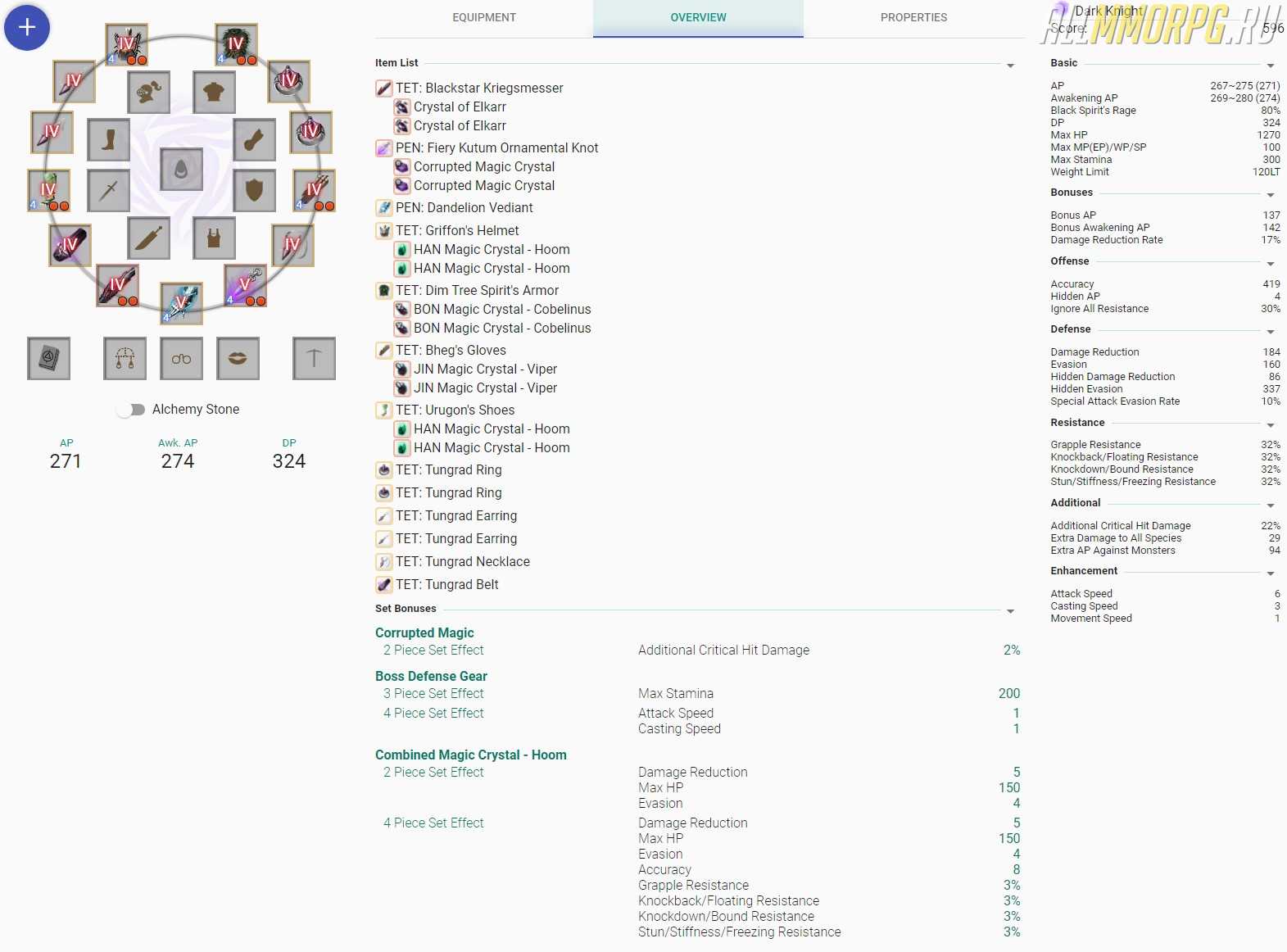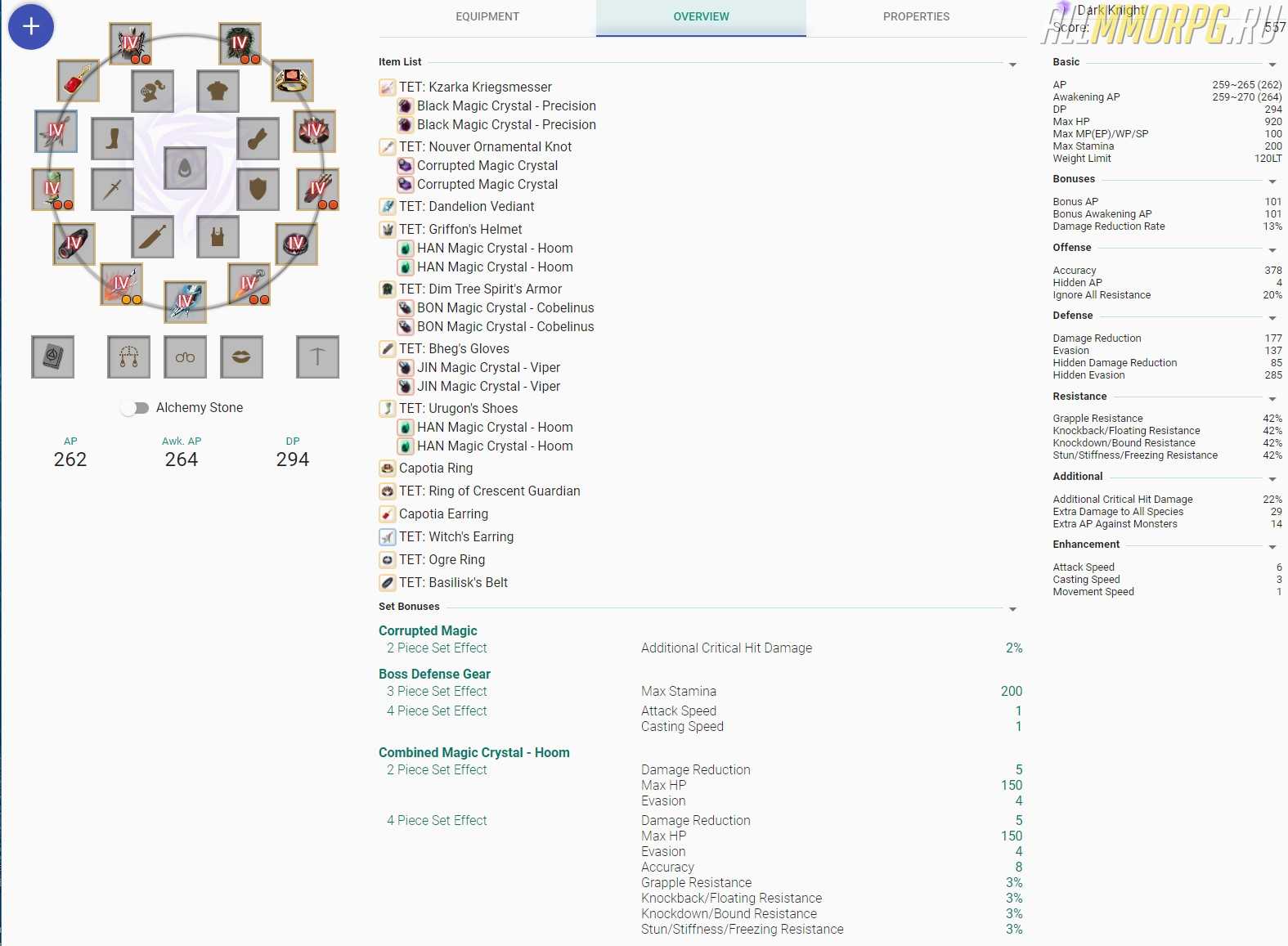 Конечная цель развития. Развитие персонажа до этого уровня займет немало времени и усилий, но в результате вы будете комфортно чувствовать себя в высокоуровневом PvP. Не забудьте улучшить экипировку камнями Кафраса. Также вы можете заменить оба ГРАНАТ III [МЕТКОСТЬ] на Кристалл Элькара (конечно, если сможете их добыть).