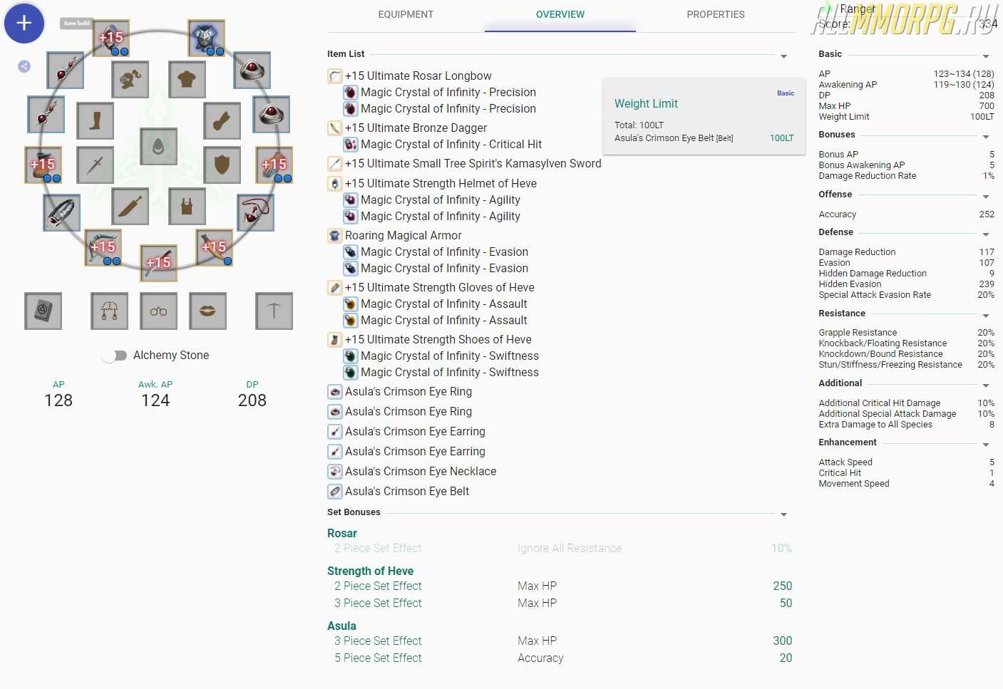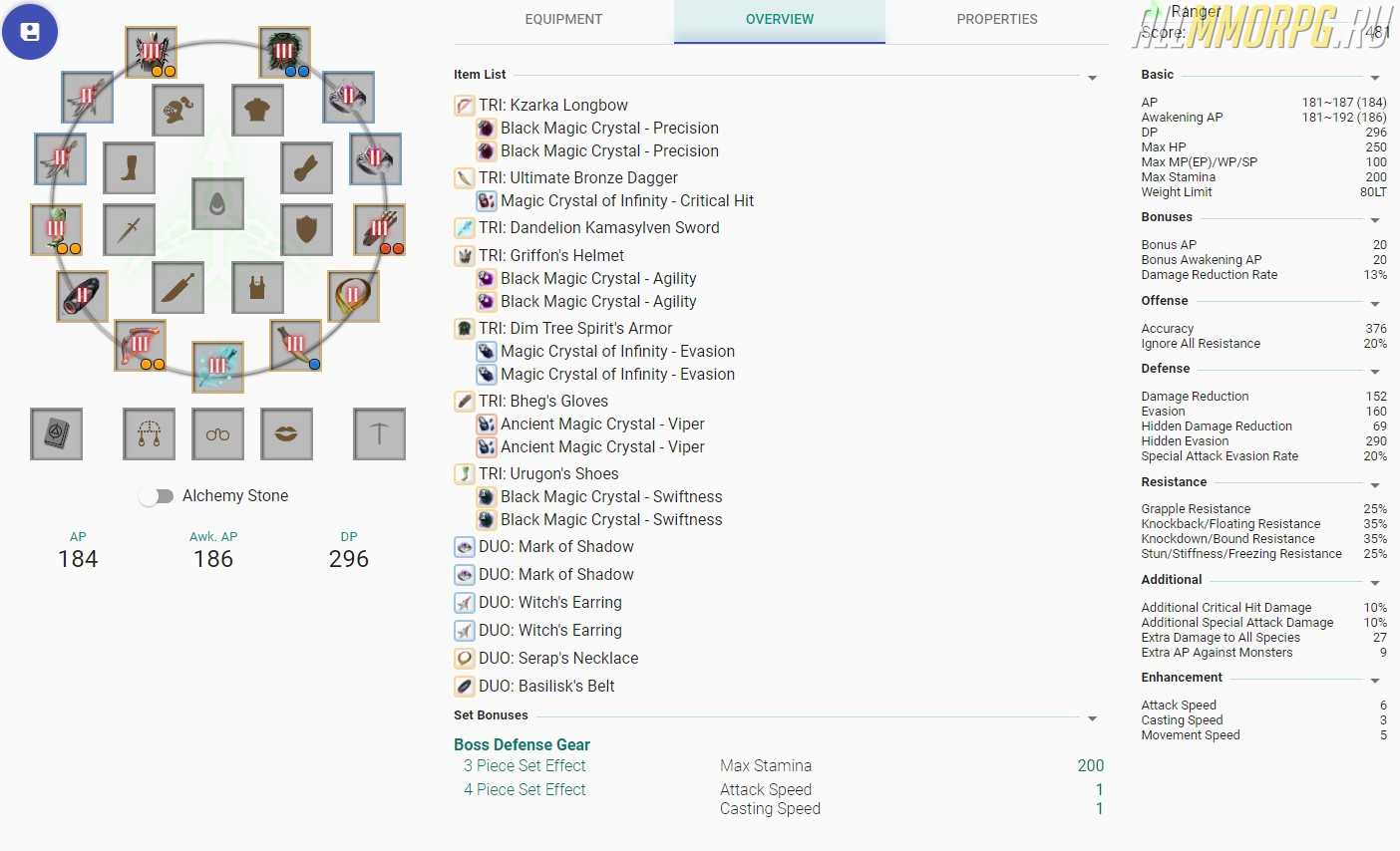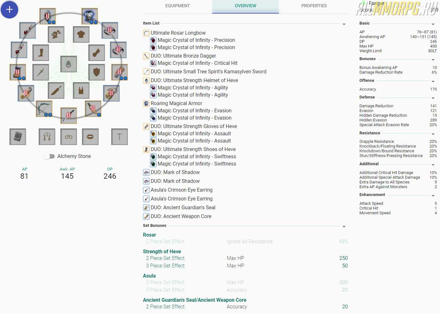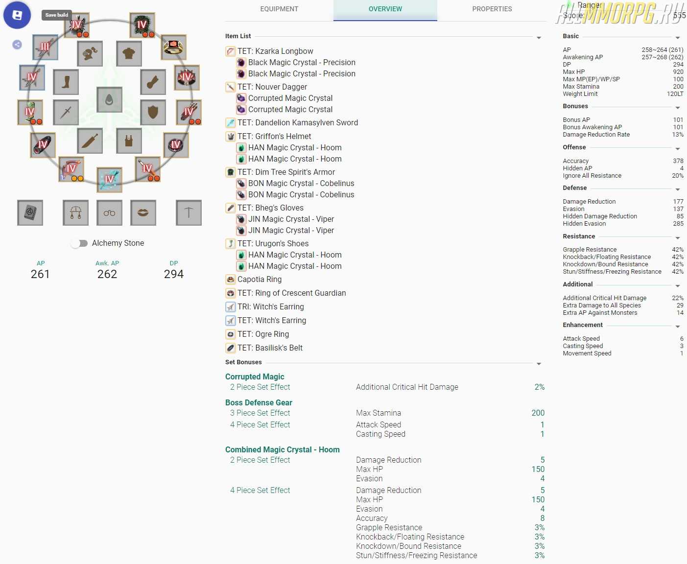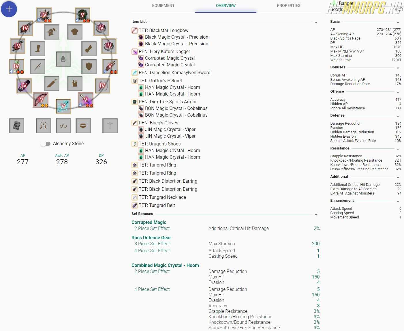 Конечная цель развития. Развитие персонажа до этого уровня займет немало времени и усилий, но в результате вы будете комфортно чувствовать себя в высокоуровневом PvP. Не забудьте улучшить экипировку камнями Кафраса. Также вы можете заменить оба ГРАНАТ III [МЕТКОСТЬ] на Кристалл Элькара (конечно, если сможете их добыть).