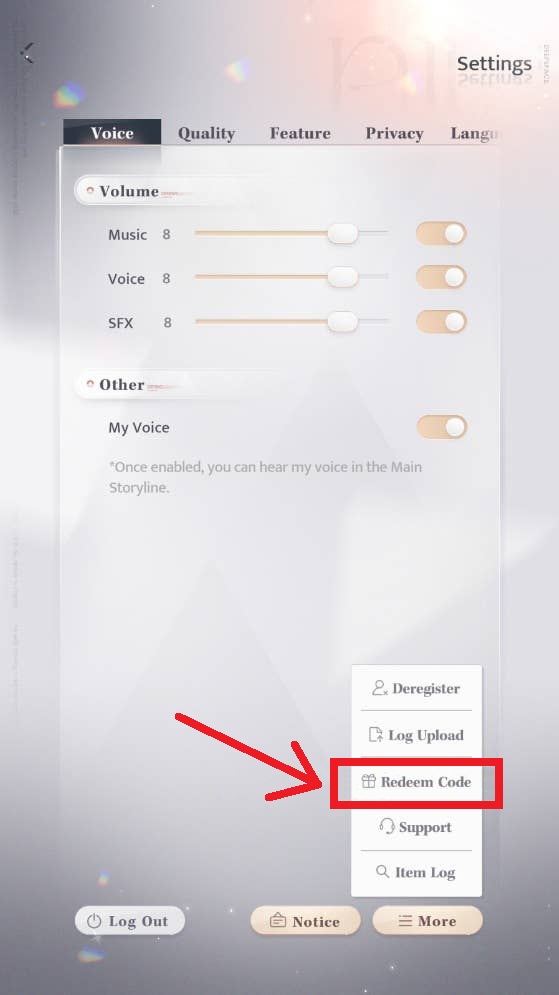 - Выберите строчку «Погасить код» (« Redeem Code»);