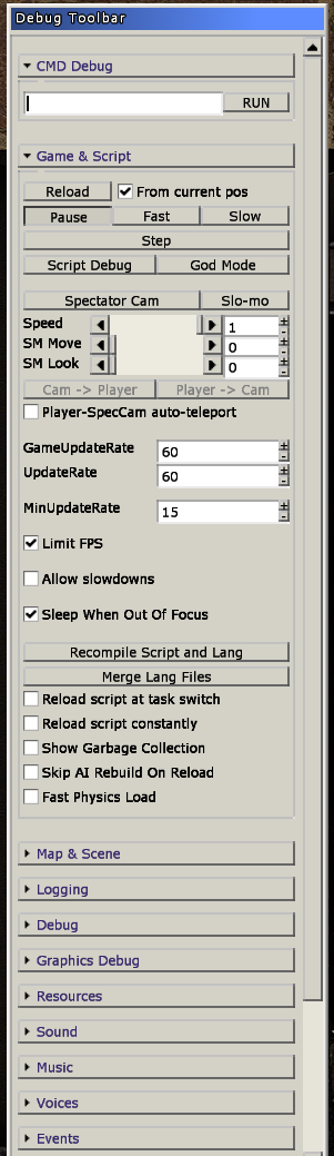 С помощью меню разработчиков вы можете настраивать музыкальное сопровождение, графику, изменять параметры локаций (карт), спавнить предметы/монстров, телепортироваться, включать «свободную» камеру и многое другое.