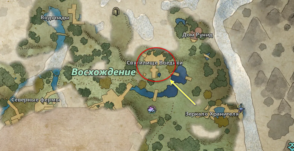 - “Основа тотема”: чтобы забрать главную часть магического предмета, достаточно будет отправиться в место по названием “Святилище Воедики”. В принципе, вы попадаете в эту локацию во время путешествия вместе с союзниками NPC из Аэдира. Как только вы попадете в нужное место, то они сами сообщат вам о том, что необходимо завладеть указанным предметом. Поэтому можете смело отправляться в святилище и забирать первый фрагмент.