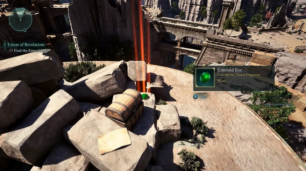 - “Агатовый глаз”: следующий драгоценный камень для тотема находится неподалеку от входа в подземелье “Руины песчаного моря”. Будучи там, оглянитесь вокруг и воспользуйтесь строительными лесами. По ним можно будет взобраться наверх и попасть в некое круглое сооружение. Именно там вы найдете нужный элемент для тотема.