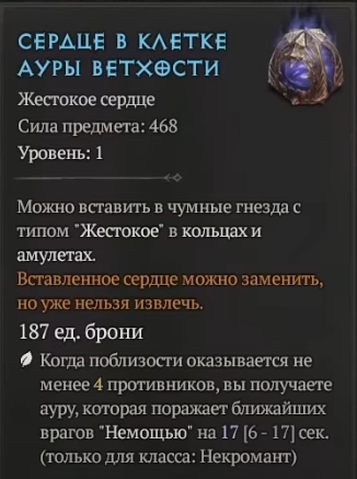 Исследуя чумные туннели, вы будете натыкаться на разъяренных чумных врагов. Умирая, они роняют Чумное сердце. Взаимодействуйте с ним, чтобы призвать сильного оскверненного монстра, и убейте его. С поверженного противника выпадет Сердце в клетке, которое можно вставить в кольцо или амулет.