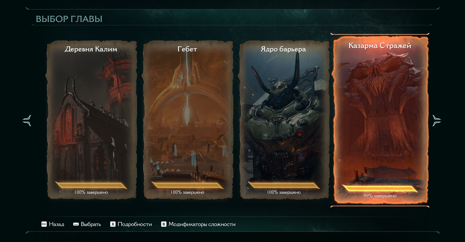 Чтобы исследовать все главы Doom: The Dark Ages на 100%, потребуется примерно 20 часов. Стоит отметить, что, если вы что-то пропустили или не смогли выполнить какое-либо испытание в задании, можете в любой момент перепройти завершенный эпизод сюжета через раздел выбора глав.