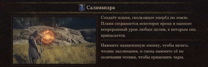 «Саламандра» – заклинание, которое наносит периодический урон от огня. Его усовершенствованная версия увеличивает область поражения и длительность эффекта горения. Этот навык оружия можно по праву считать одним из лучших способов нанесения АОЕ урона.