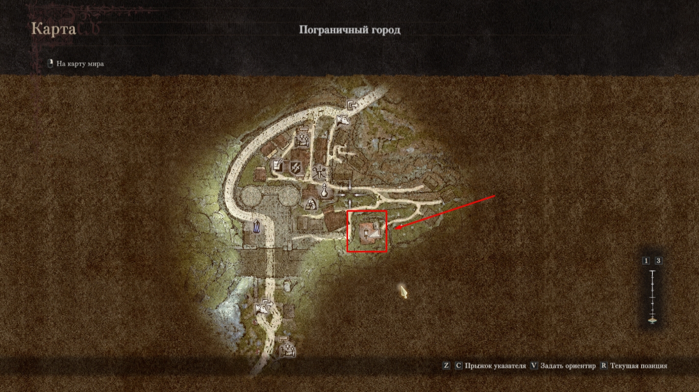 - Отправляйтесь в Пограничный город и найдите дом Мирддина (находится на востоке населенного пункта);
