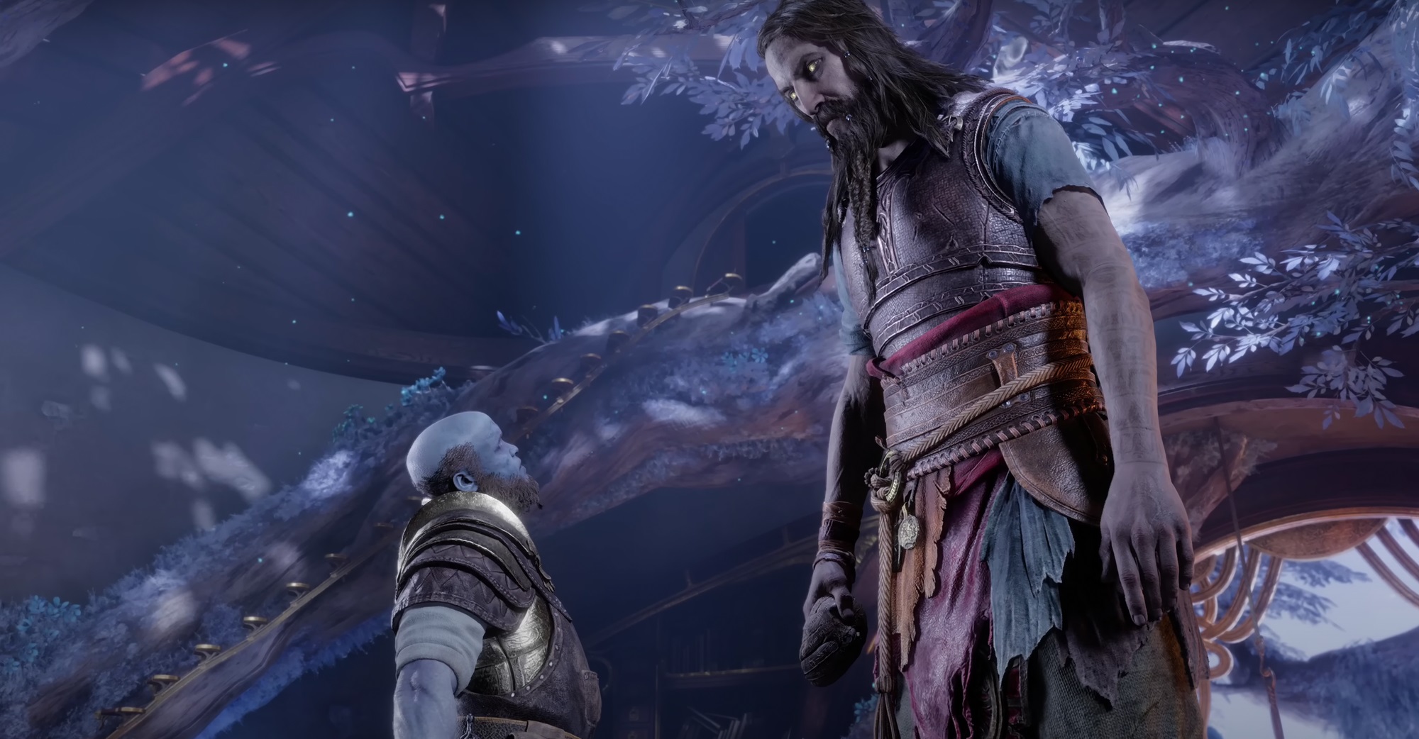 После разрушения Асгарда в Нифльхейм упал один из обломков небесного царства богов, причем, на удачу Кратоса, внутри него сидел настоящий Тюр, ни сном ни духом не ведающий о судьбе Одина и обители богов.