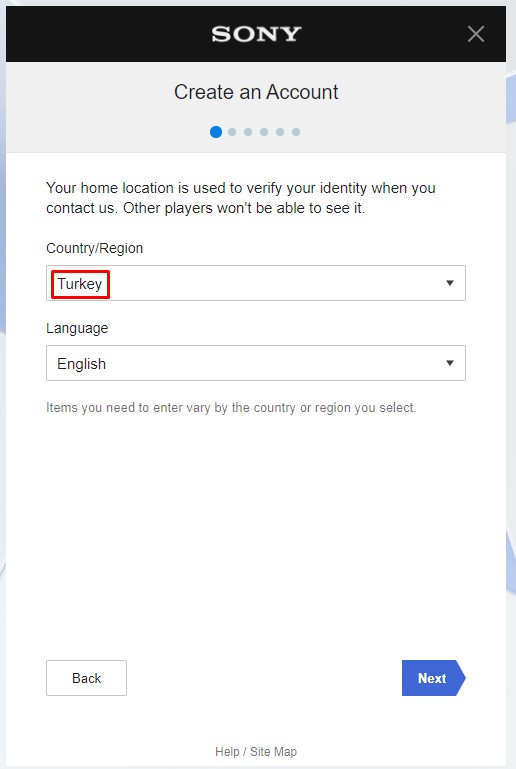 - При регистрации профиля PlayStation, выбираем страну Турция;