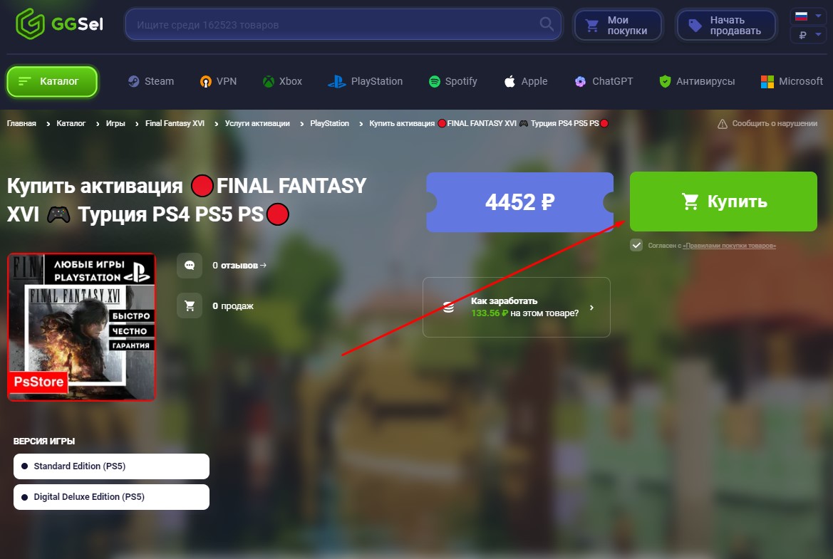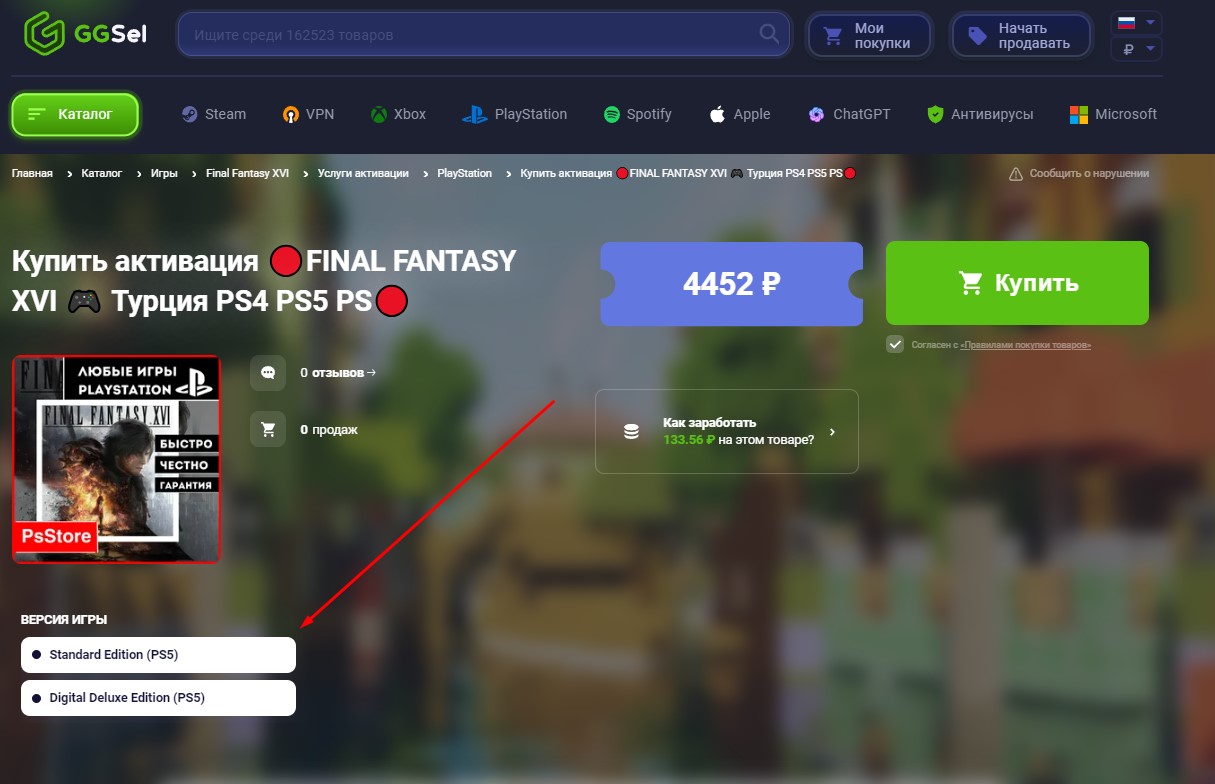 - Далее заходим на маркетплейс GGSel.net и определяемся с понравившимся предложением;