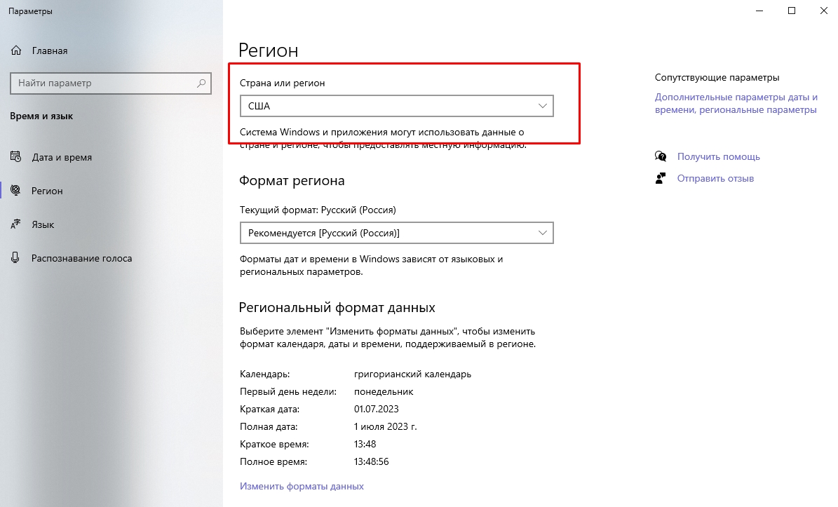 - Зайдите в настройки региональных параметров на вашем ПК и смените регион на тот, который укажет продавец в своей инструкции (обычно это США или Турция);
