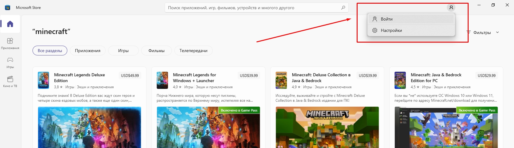 - Откройте Microsoft Store и залогиньтесь в нем;