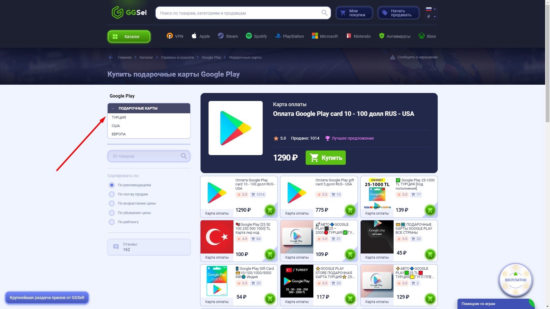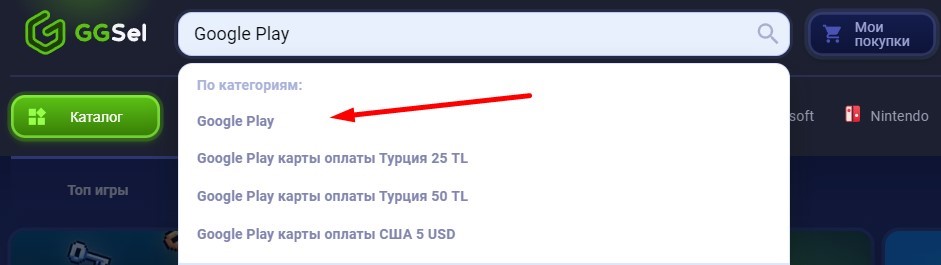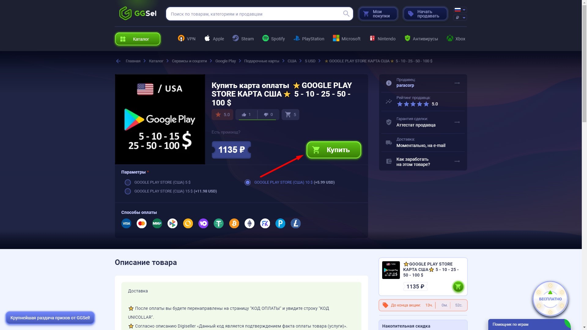 Ниже мы покажем на примере сайта GGSel, как купить подарочный сертификат для пополнения баланса Google Play: