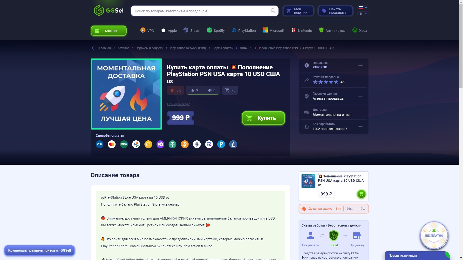 Покупка ключа активации – самый простой и быстрый способ получить лицензионную версию игры в условиях санкций. Найти его можно на таких маркетплейсах как GGSel: