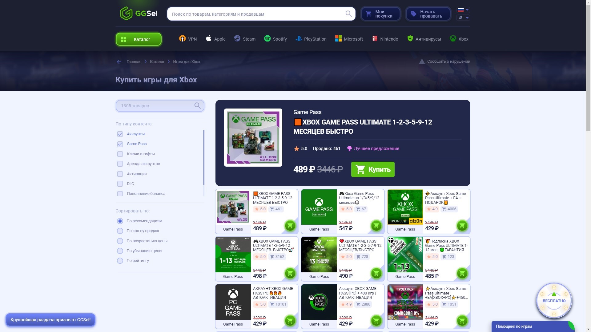 Второй способ поиграть в лицензионный Майнкрафт – через приложение Xbox для ПК, которое можно скачать по этой ссылке с официального сайта. Установите его на свой компьютер и залогиньтесь, используя данные от своей учетной записи. Дальше вам нужно купить аккаунт Microsoft с активным Game Pass. Найти такой товар можно на том же GGSel: