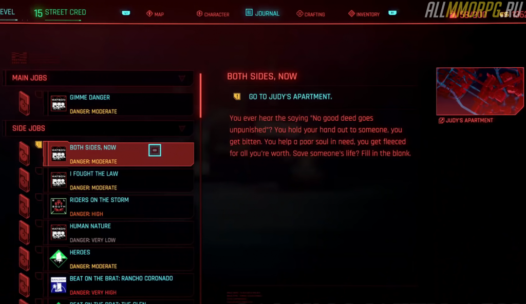 Первая второстепенная миссия появится автоматически по мере продвижения по сюжету. Чтобы получить звонок от Джуди, завершите квест «Двойная жизнь» и подождите сутки игрового времени. Спустя 24 часа Альварес позвонит главному герою, и квест добавится в журнал заданий.