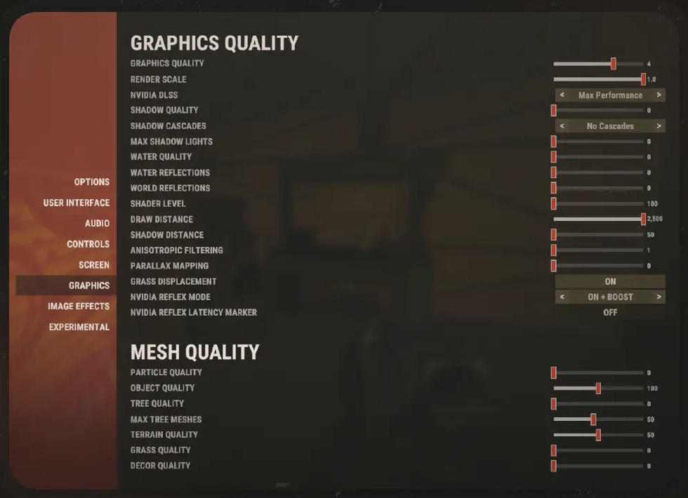 - Max tree meshes – ползунок выставьте на 50. Если у вас слишком слабый ПК, то выставьте его на минимум;