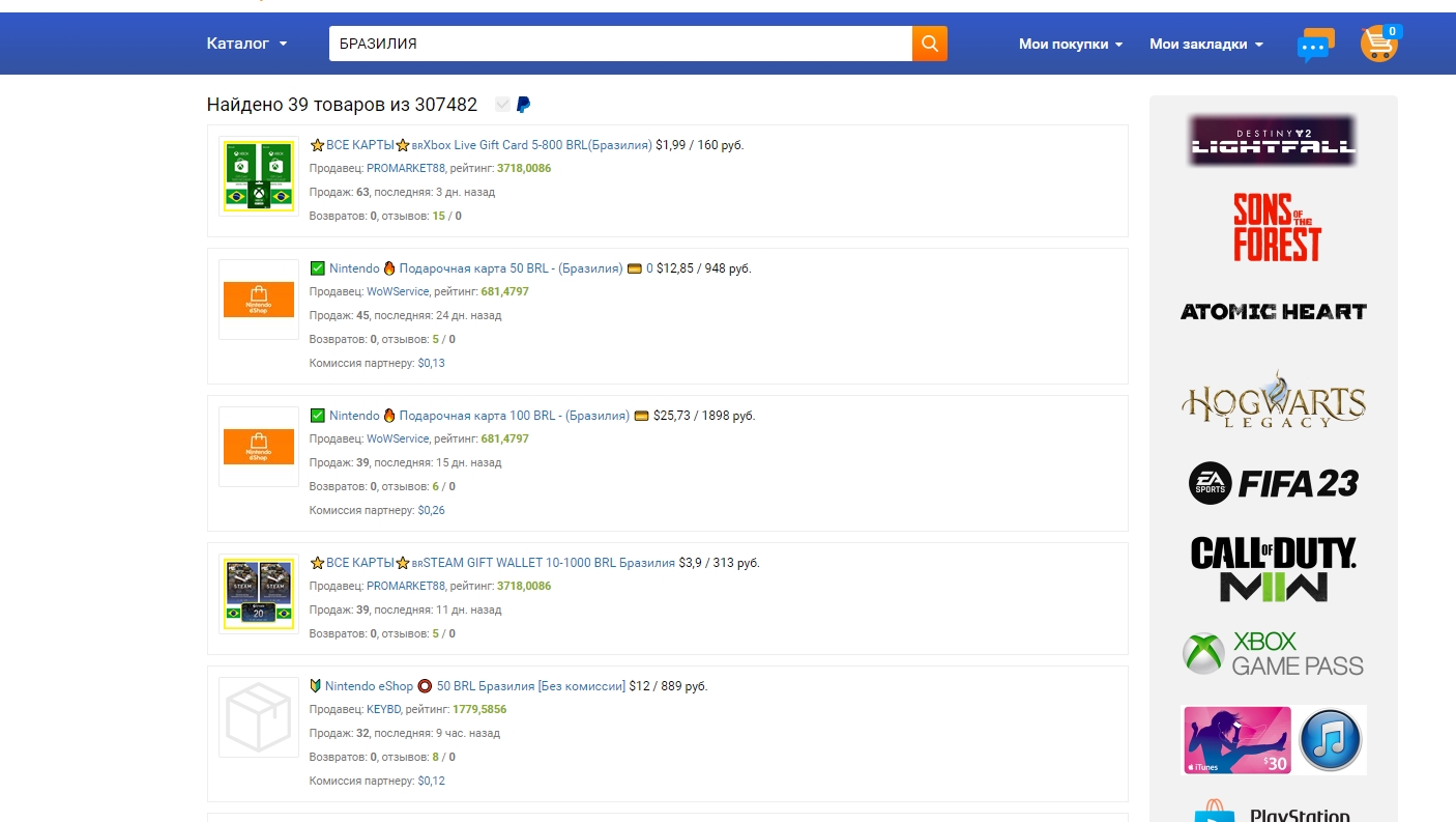 - Зайдите на Фанпей или Плати Маркет. В строке поиска напишите «Бразилия»;