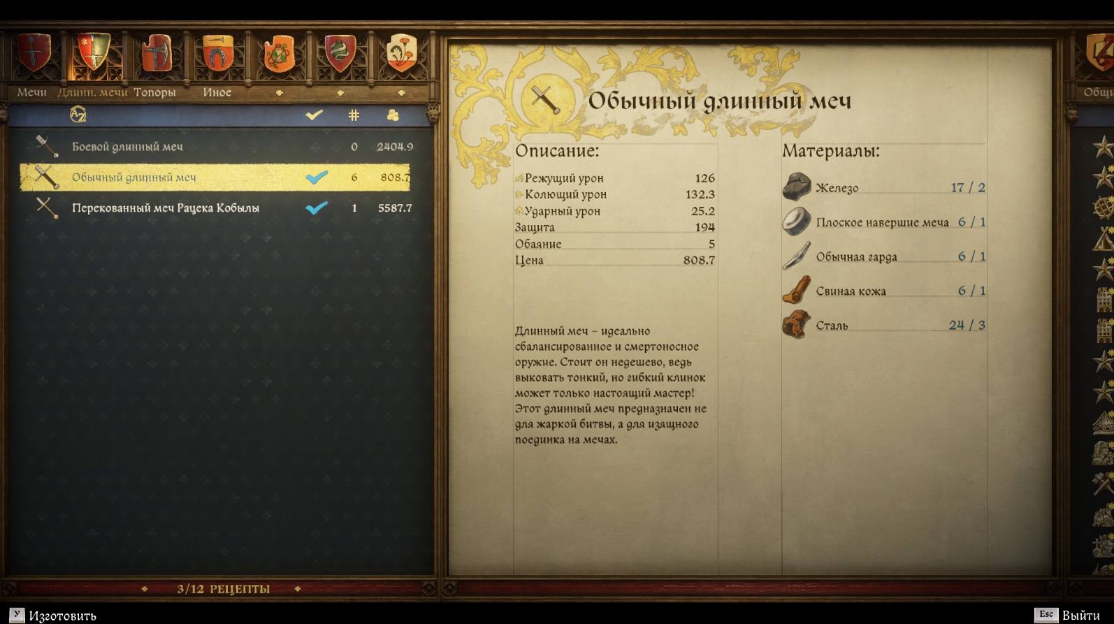 Мы покажем, как заниматься кузнечным делом на примере Обычного длинного меча: