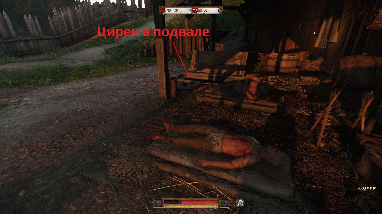 Начините с получения зелий и повязок. Они лежат в сундуке на втором ярусе дома Клары. Далее идите в западную часть крепости и найдите мужчин, нуждающихся в помощи. Марк и Козлик лежат на матрасах под навесом, а Цирек находится в подвальном помещении.