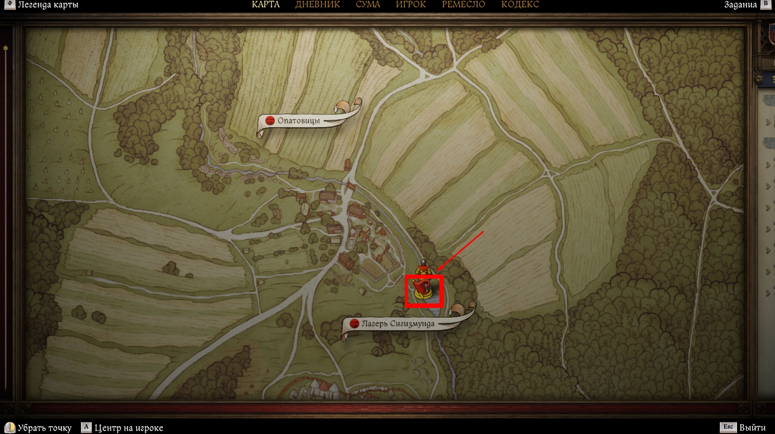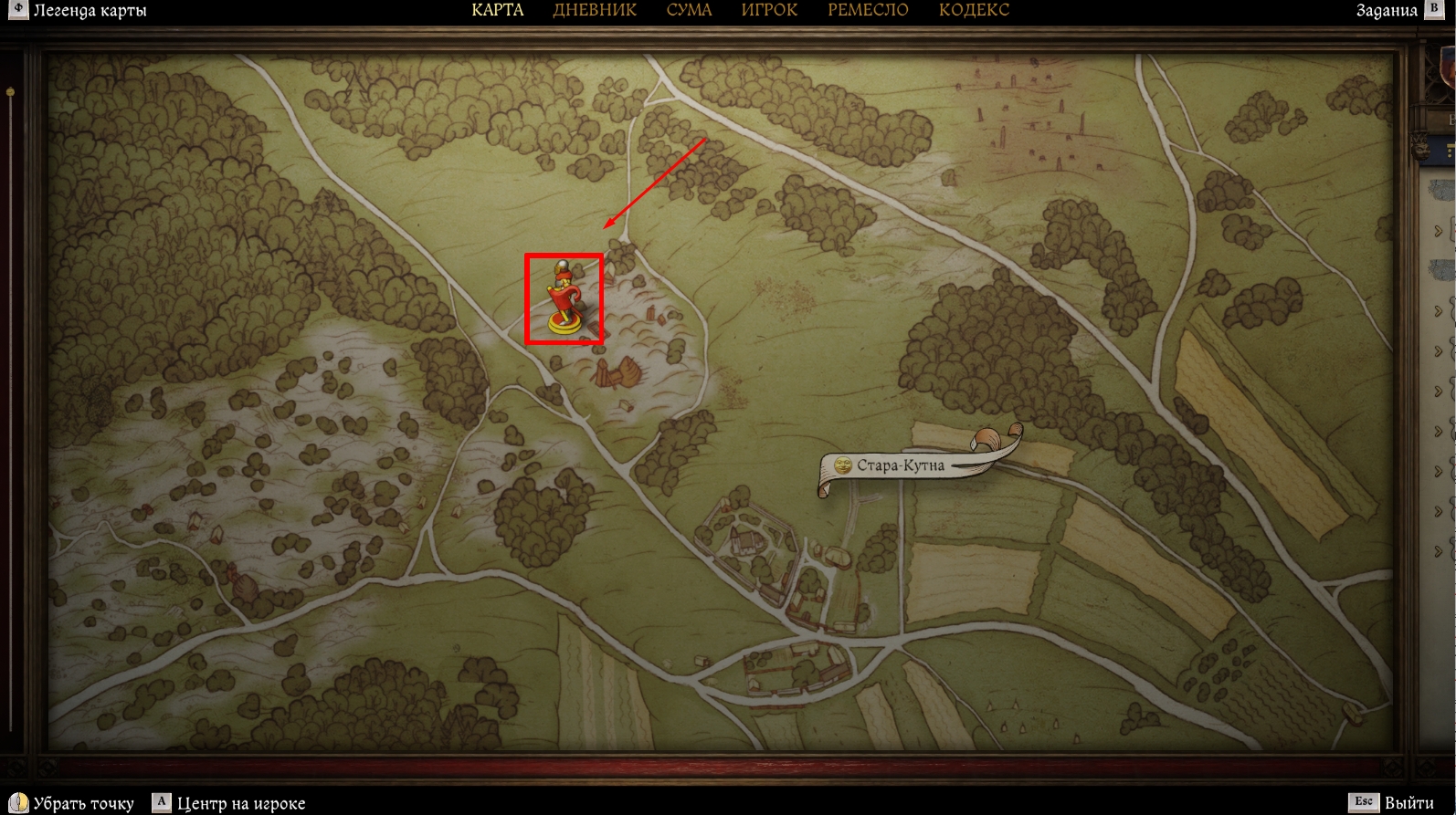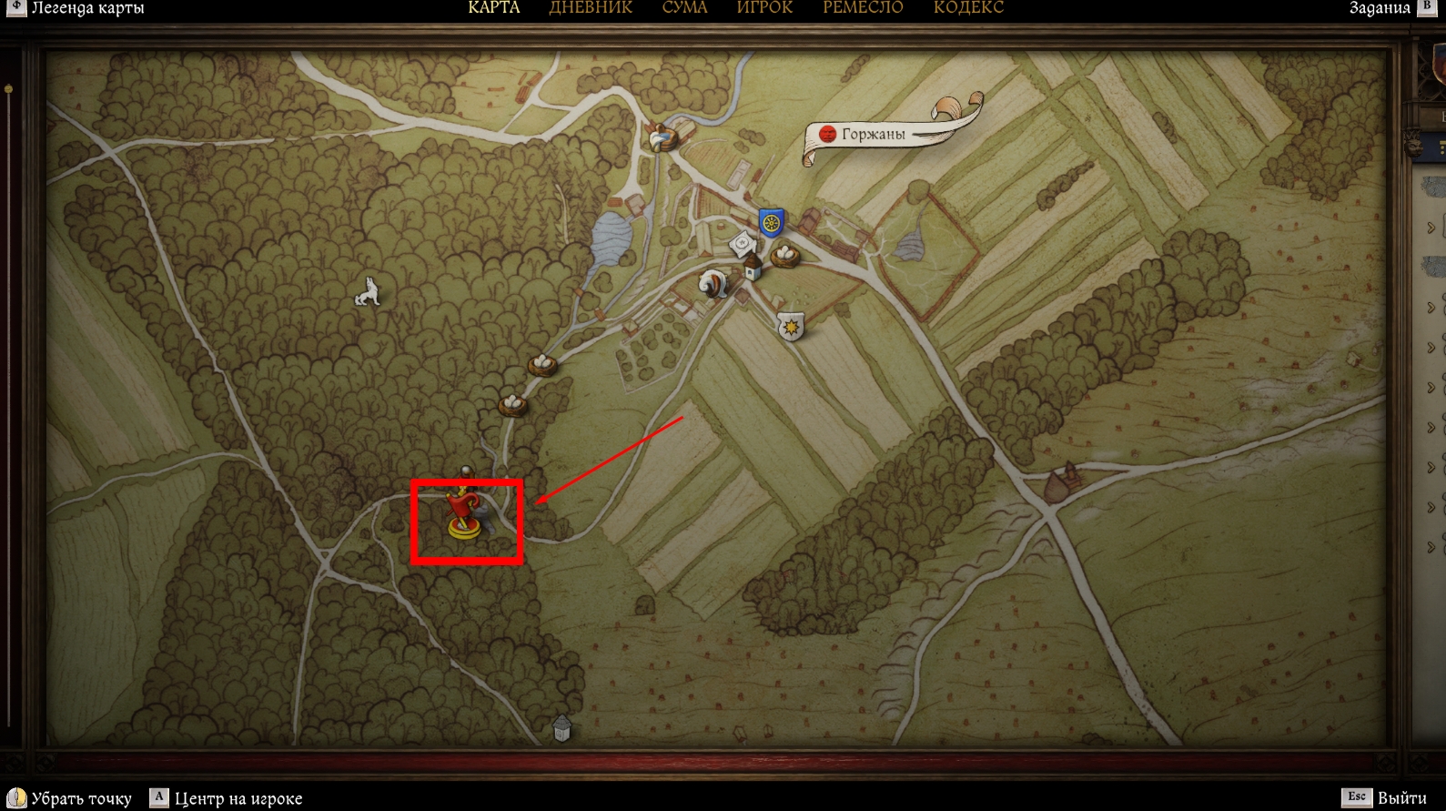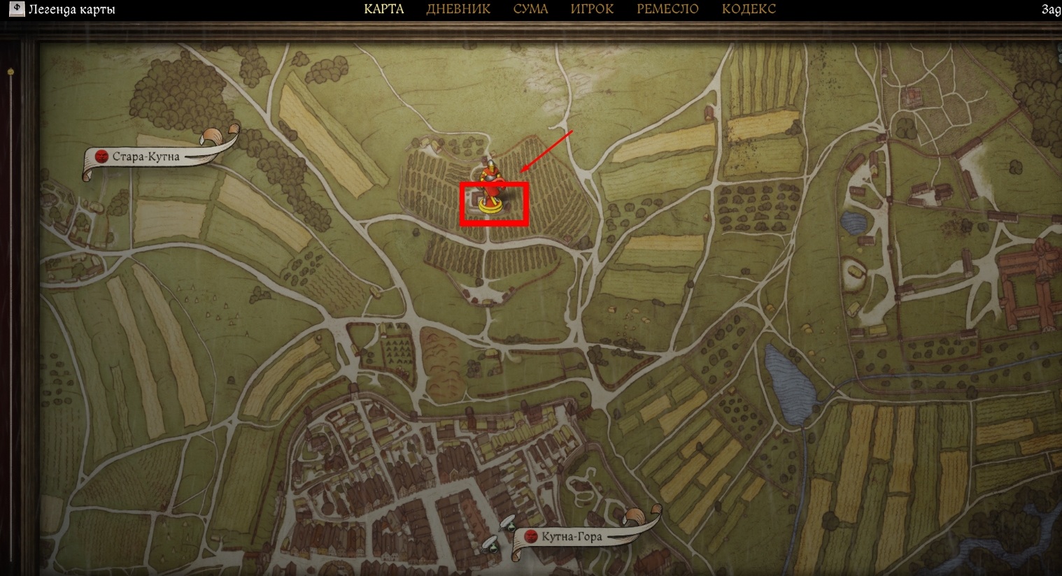 - Лежит в сундуке разграбленного каравана на обочине дороги на между Мышковицами и Кутна-Горой