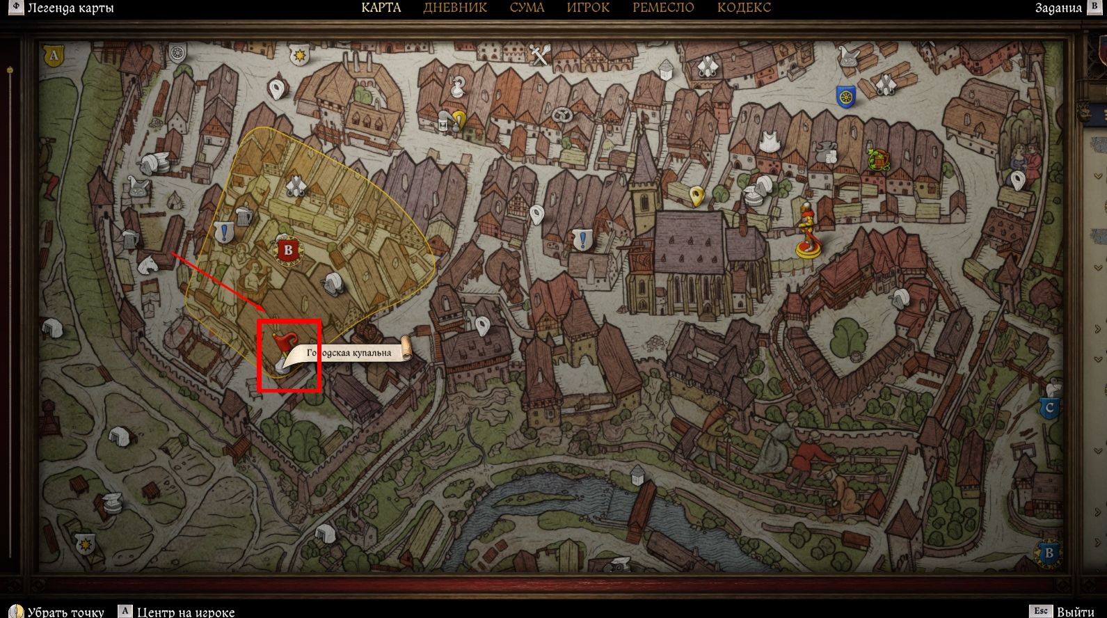 При прохождении сюжетного задания «В подземелье» вас отправят на поиски Козятина. После посещения корчмы «Дыра» идите в купальню у западной стены Кутна-Горы и поговорите внутри с хозяйкой заведения Беатой.