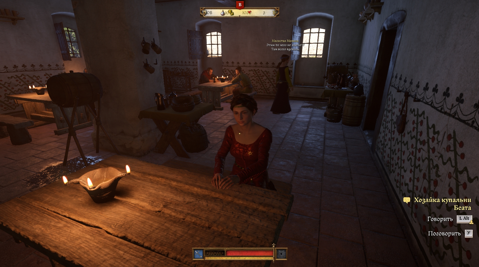 После купания в комнате с вами окажется та самая Вшивая Мария. Поговорите с ней сразу же, пока она не ушла, и спросите, разливает ли она выпивку.