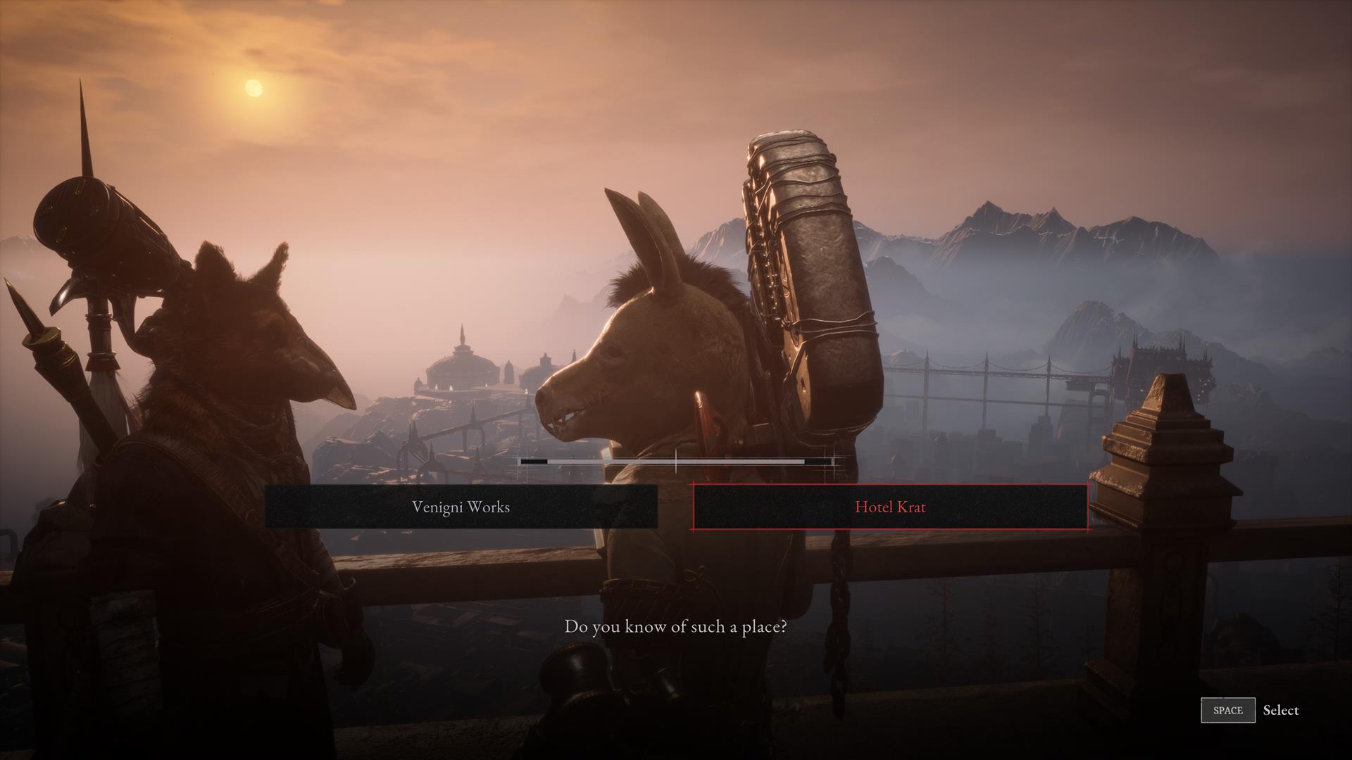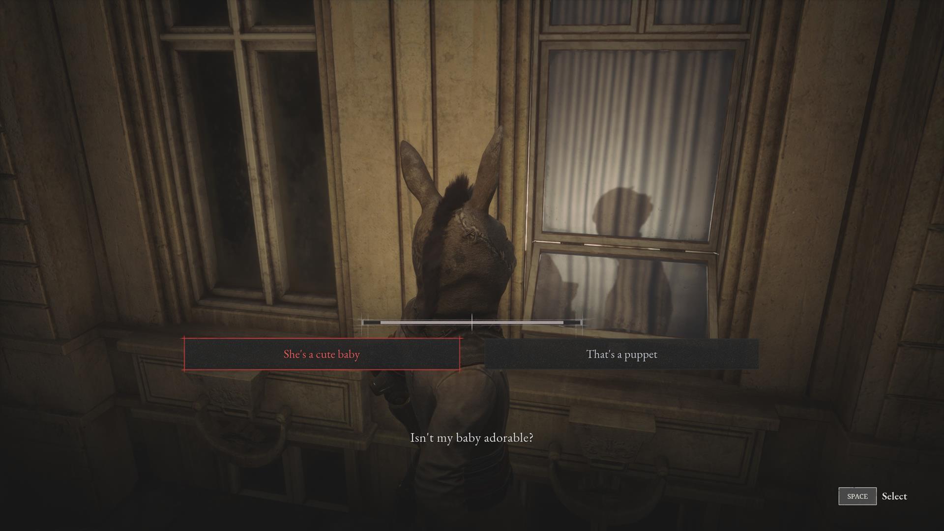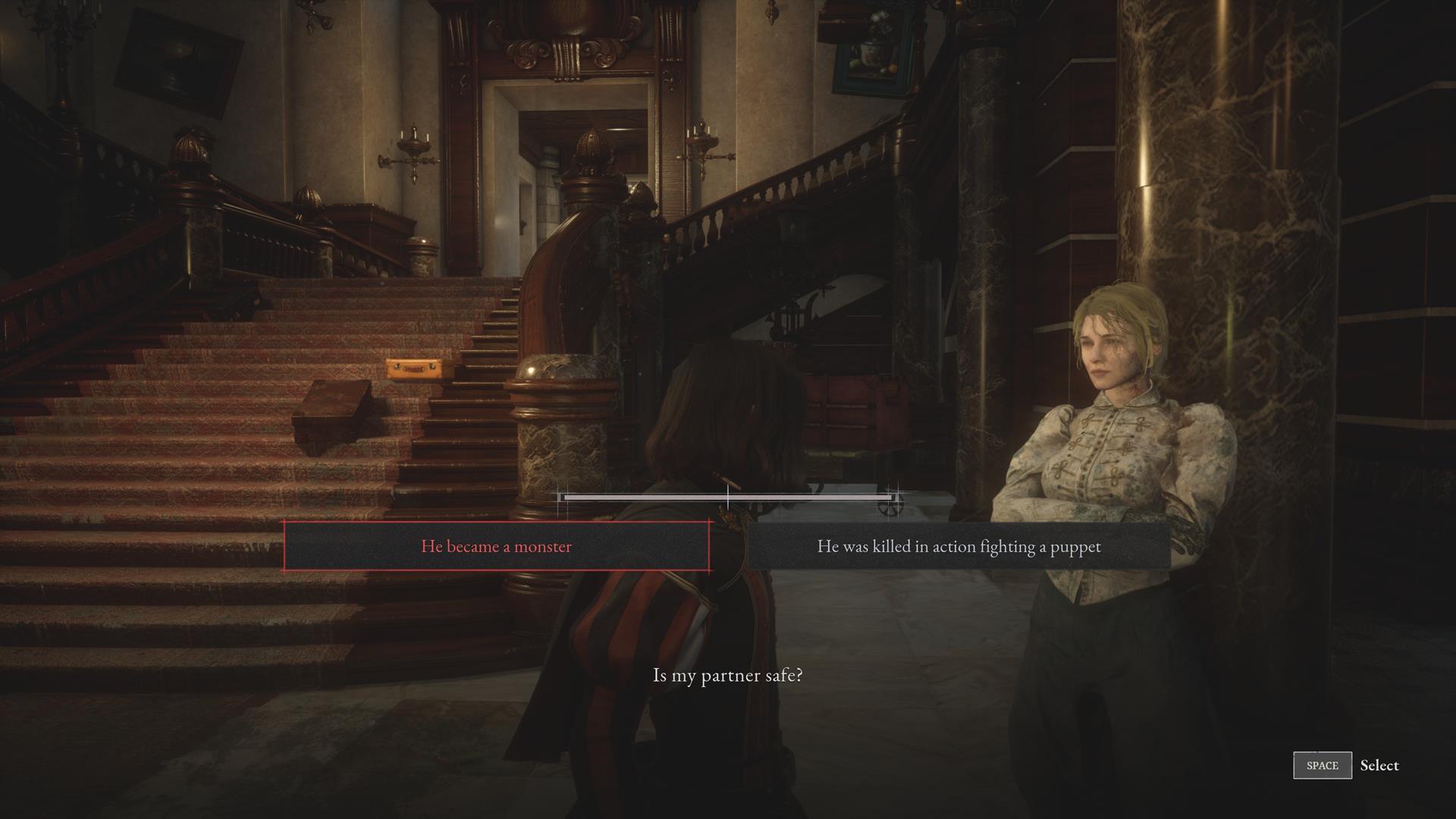 Первый выбор вам придется сделать у входа в отель «Крат». После победы над боссом Командующий парадом София спросит главного героя, является ли он марионеткой или нет. Единственный способ проникнуть в здание – обмануть ее. В противном случае, зная о том, какое безумие творят куклы, она откажется пускать Пиноккио внутрь.