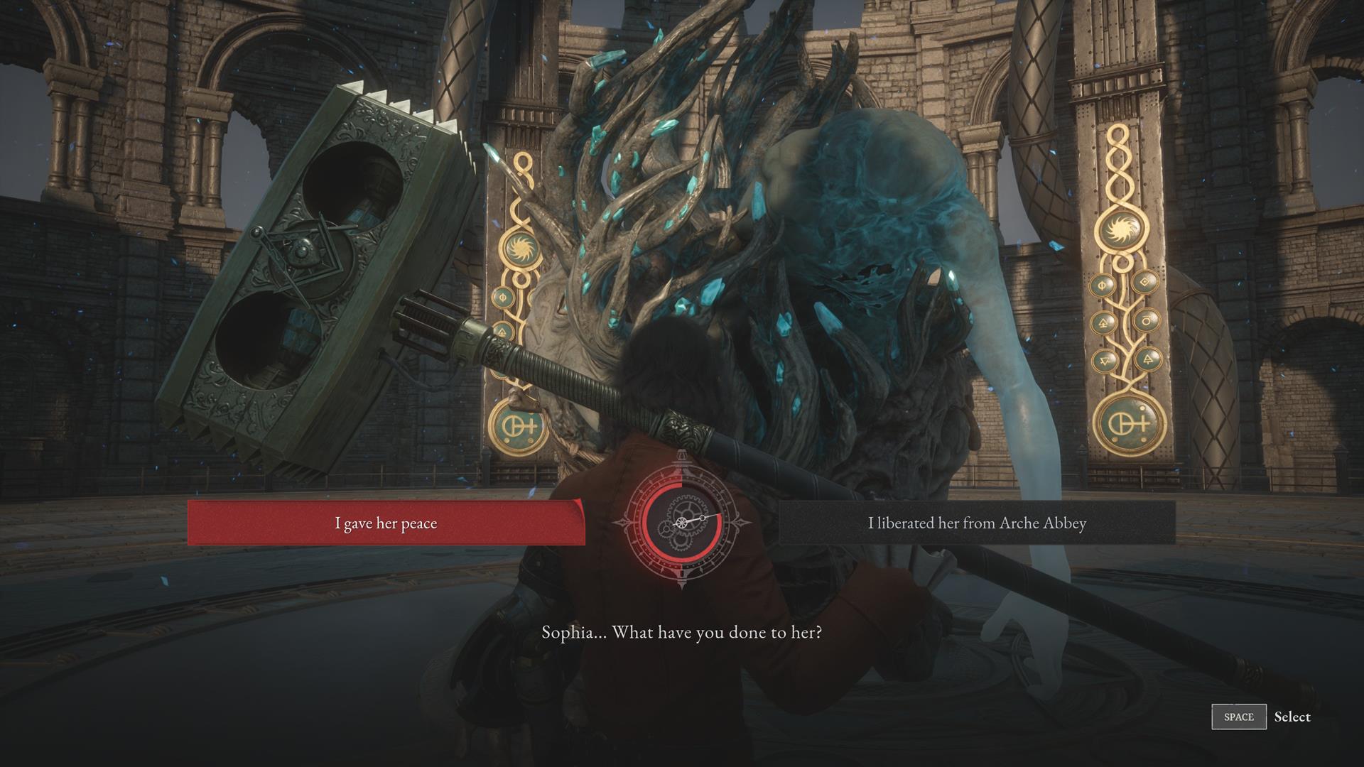 Последний выбор вам предстоит сделать после победы над Симоном Манусом, финальным боссом Lies of P. То, как вы поступили с Софией, когда узнали правду о ней в аббатстве Арче, по сути, особой роли не играет. Однако, определяясь с тем, что сказать Симону – правду или ложь – учитывайте следующий факт: разговор с ним является, можно сказать, решающим и от него зависит, какая концовка сюжета вас ждет.