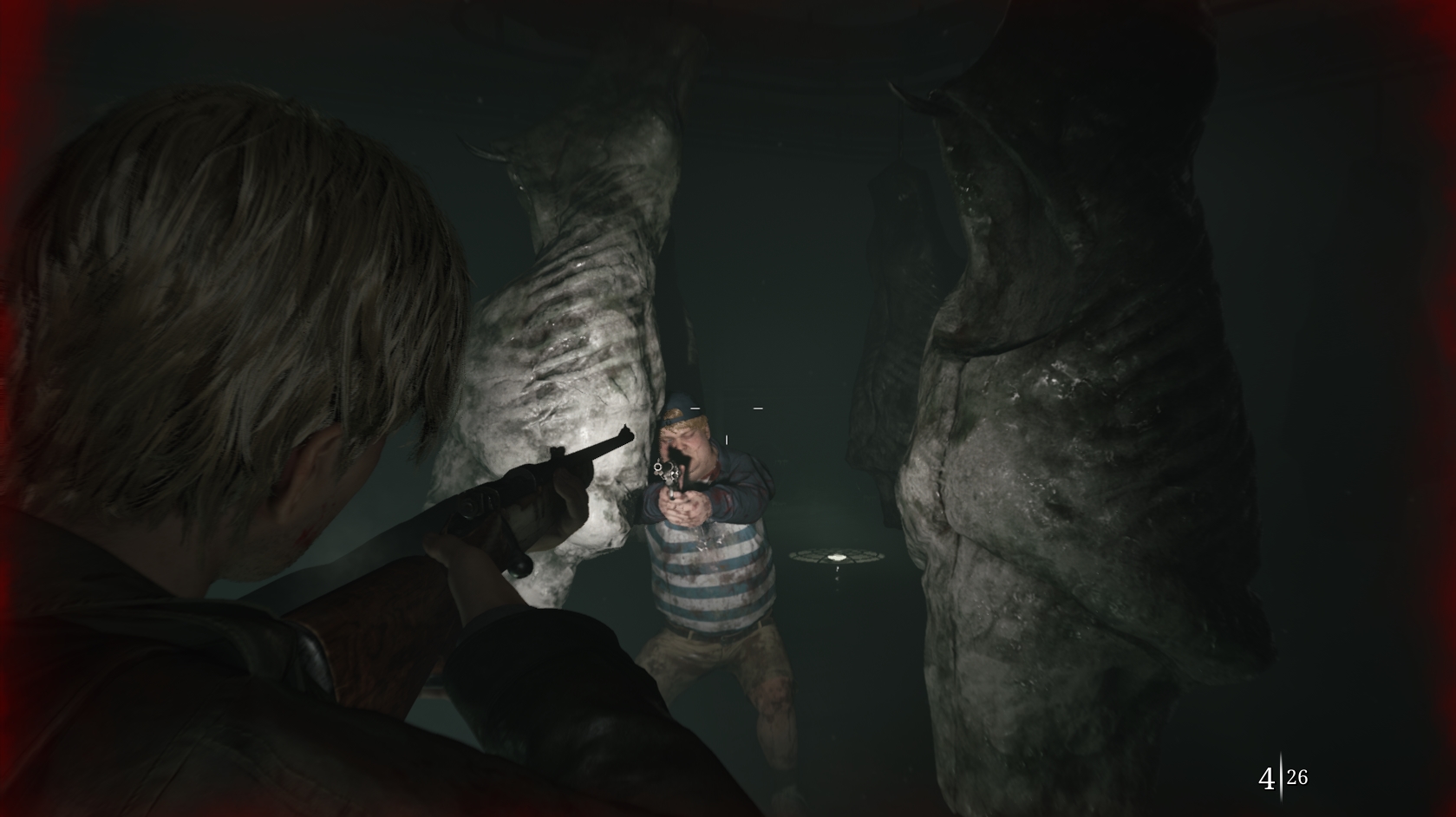 Альтернативный способ убийства босса – использование оружие ближнего боя. В этом случае вам нужно постоянно крутиться рядом с мясными тушами и ждать, пока противник закончит стрелять из револьвера. Как только у вас появился шанс выполнить атаку, подбегите к нему вплотную, ударьте его и вернитесь к ближайшей мясной туше. Да, этот вариант довольно сложный и долгий, но он будет как нельзя кстати при нехватке боеприпасов. Кстати, под конец вы сможете добить врага несколькими выстрелами из дробовика.