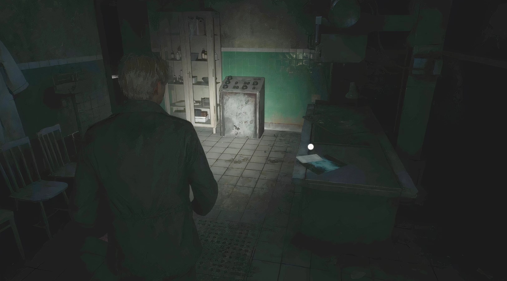 Загляните на втором этаже в процедурную, соединенную с комнатой медсестер. Здесь Джеймсу придется найти комбинацию для кода на двери, подсказка к которой находится в ординаторской на первом ярусе. И когда вы спуститесь вниз за необходимой комбинацией, не забудьте с кухни прихватить средство от плесени, оно еще пригодится.