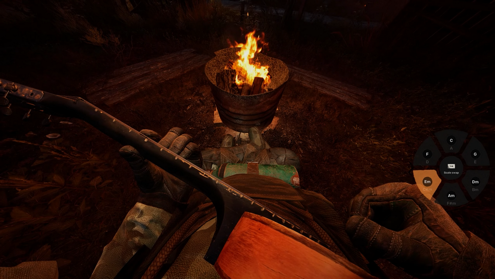 Кстати, наиболее интересным способом игры на музыкальном инструменте является взаимодействие с костром. Поэтому мы крайне рекомендуем вам выполнить следующее: