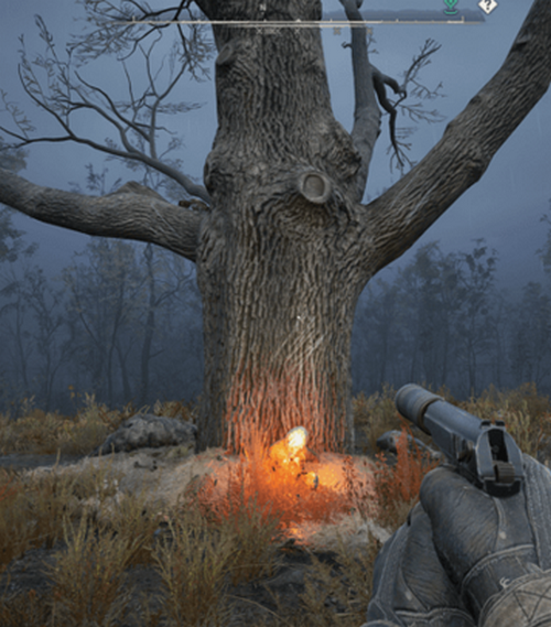 - Если вы отправитесь в западную сторону от завода, то можете увидеть массивное дерево. Оно не такое простое, так как у корней там постоянно спавнится артефакт “Глаз”. Можете периодически туда заглядывать, чтобы фармить этот предмет.