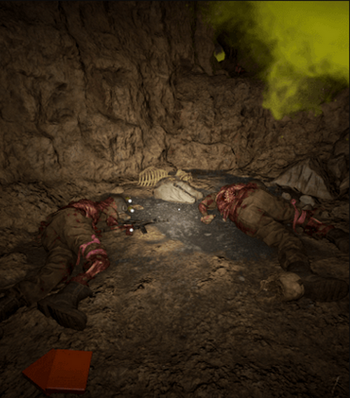 - Для начала рекомендуем отправиться в место, указанное на скриншоте. Там имеется пещера, в которой вы найдете два трупа. Между ними лежит нужный тайник. Но оставайтесь осторожны, в этом месте полно кислотных аномалий.
