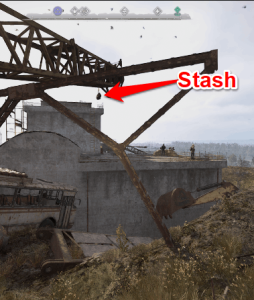 - К северу от “Шлаковой кучи” находится строительный кран. Если внимательно к нему присмотреться, то можно увидеть, что там висит сумка. Осталось только понять, как именно до него добраться и смело начинать охоту на хабар.