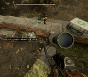 - Отправляйтесь на локацию “Выводок” и заберитесь на крышу основного здания. Там вы обнаружите броню ПСЗ-5В и сумку с лутом. Главное исследовать всю крышу, чтобы не упустить желаемый тайник.