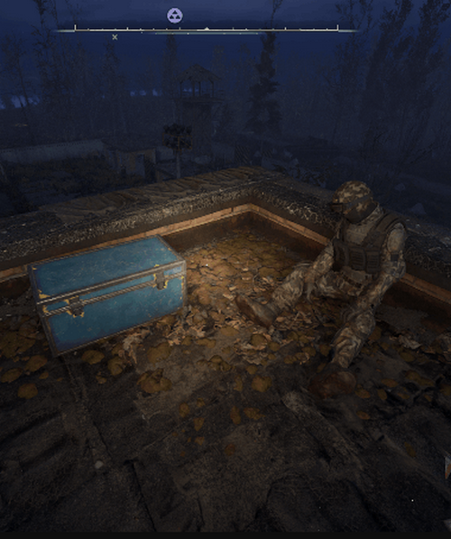 - На просторах локации “Выводок” имеется еще один тайник, который становится доступным только после активации побочного квеста “Будмо”. Для получения лута необходимо внимательно исследовать окружение и искать круглый бетон, который замаскирован деревянными досками.