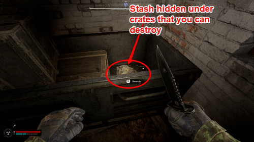 - Если идти по дороге в “Глинке”, то можно наткнуться на свинарник. Зайдите в него и отыщите кучу старых ящиков. Среди них вы обнаружите тайник с лутом. Если понадобится, можете разрушить деревянные преграды, чтобы они вам не мешали.