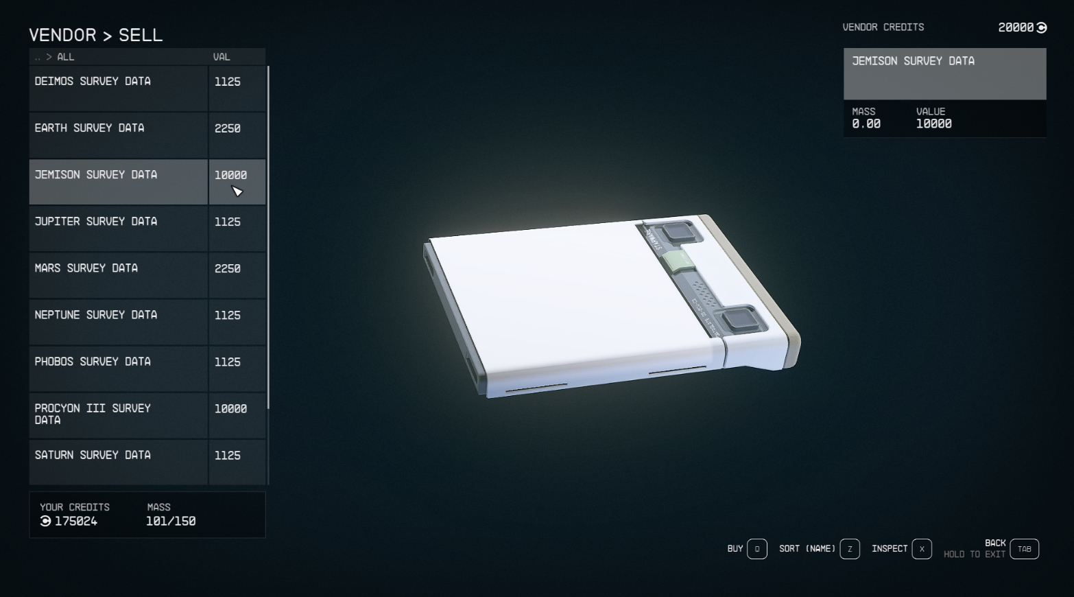 Если кредитов все равно не хватает, а они нужны срочно, слетайте на одну из незаселенных лун (например, на орбите Марса). На этих лунах ничего нет, поэтому при сканировании данные добавятся в инвентарь автоматически, но и получить за эти записи слишком много, естественно, не выйдет.