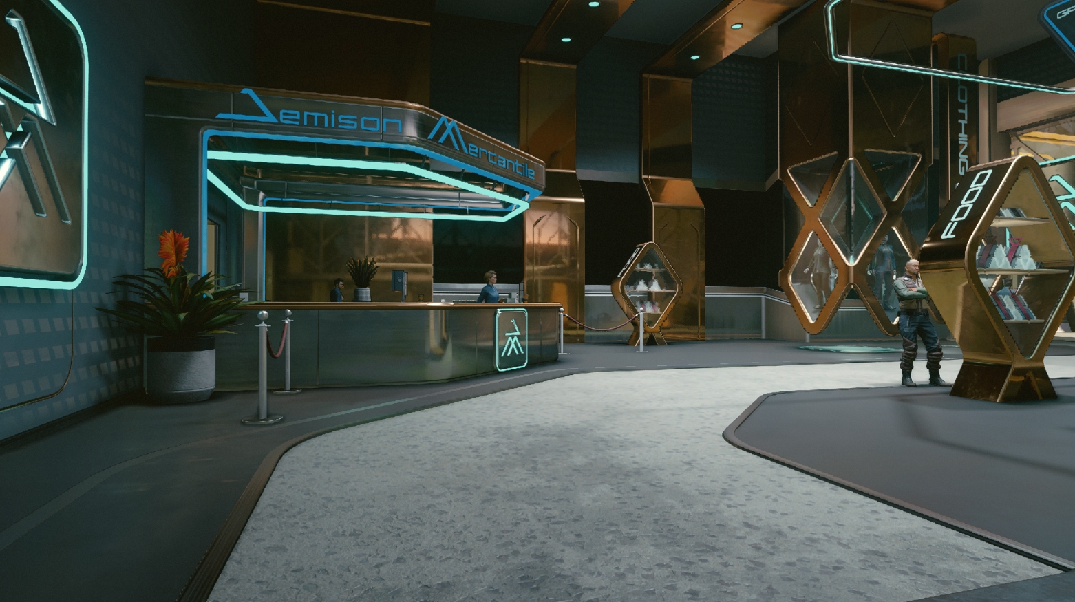 Если вы только начали крафтить всякие штуки и у вас закончились базовые ресурсы, вы можете купить их у разных торговцев, в том числе на Джемисоне. Зайдите в Нью-Атлантис со стороны летной зоны, поднимитесь к кварталу отелей и магазинов и поищите там вывеску Jemison Mercantile.