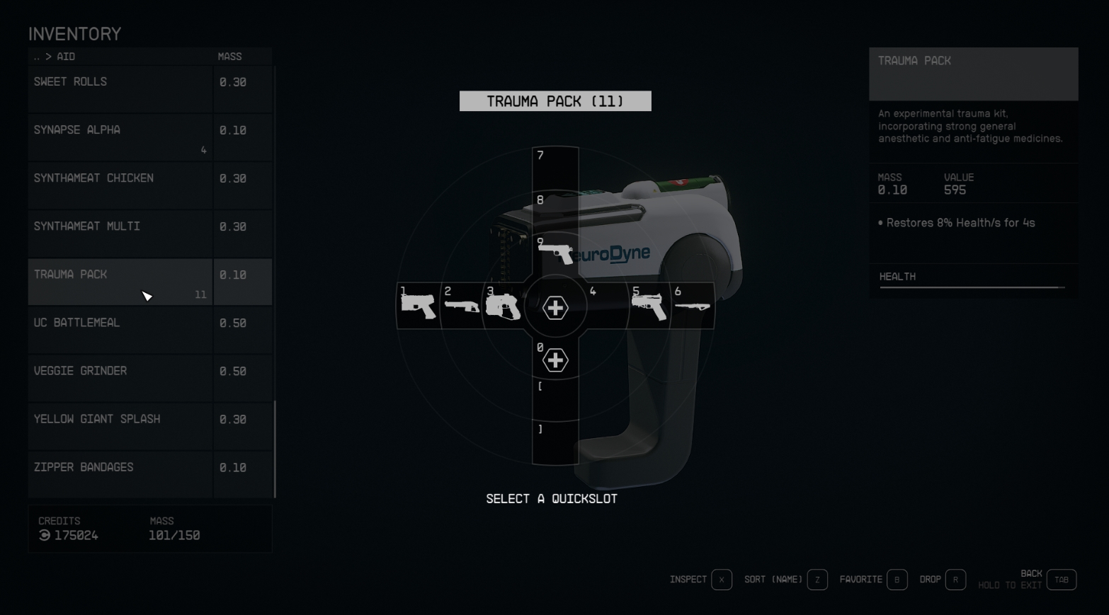 У каждого предмета в инвентаре есть цена (Value), но при продаже этого предмета вы можете получить больше или меньше кредитов, в зависимости от настроения торговца.
