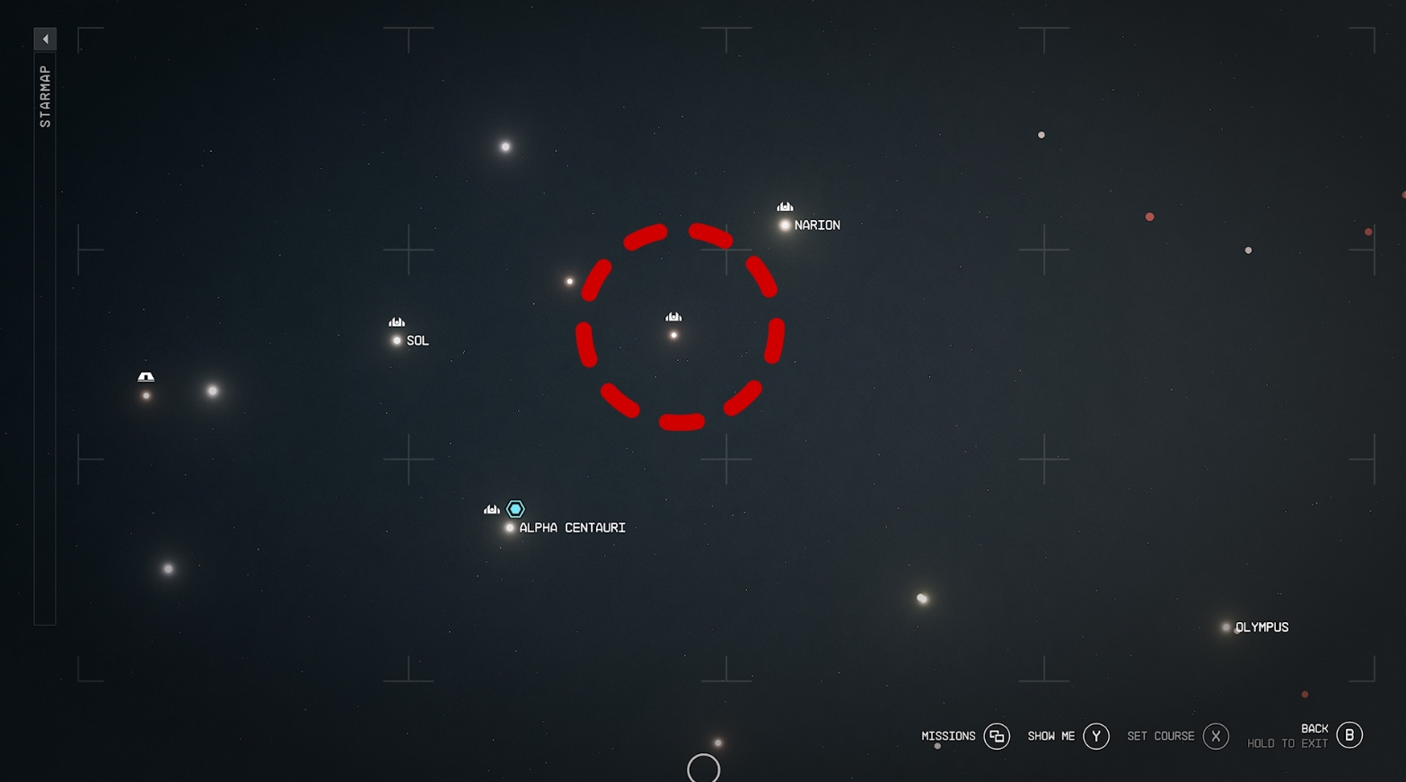 - Если система или планета помечена треугольником с выемкой в центре, это означает, что там есть какое-то поселение. Это может быть крупный город вроде Нью-Атлантиса, небольшой форпост типа Нью-Хомстеда на Титане или космическая станция, на которой можно поторговать. Иконки появляются только в тех местах, где вы уже были.