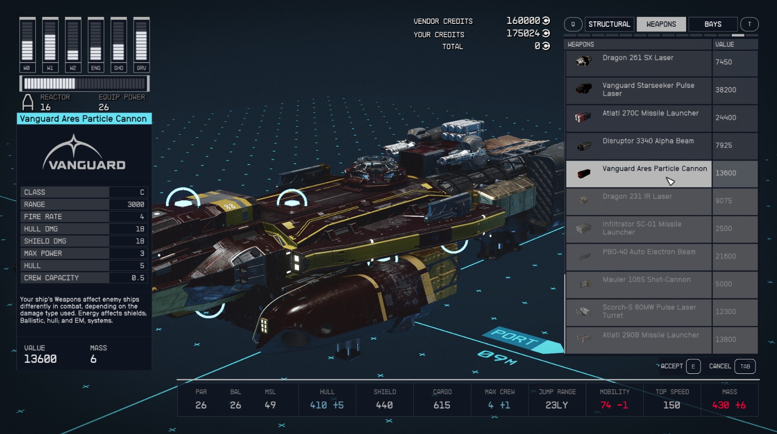 Разные порты и города продают разные улучшения для кораблей. К примеру, на Марсе можно получить базовые улучшения и запчасти. Если вы хотите получить запчасти подороже и получше, придется отправиться куда-нибудь еще. Проверьте все доступные вам терминалы и NPC, а потом определите, что вы хотите добавить или убрать.